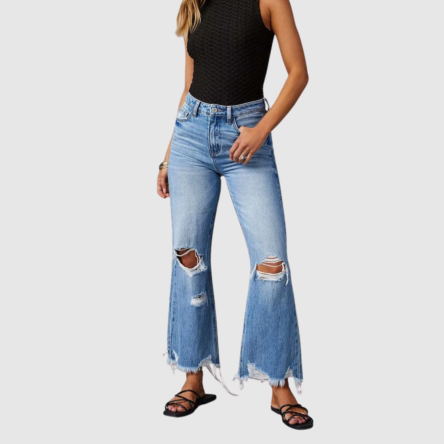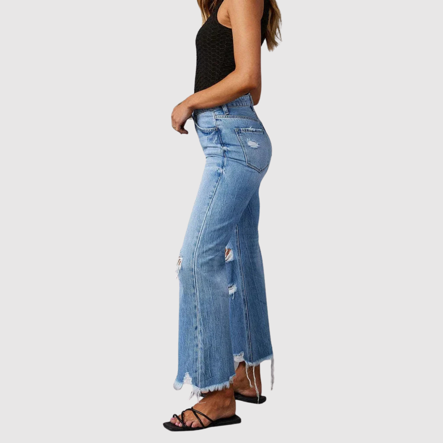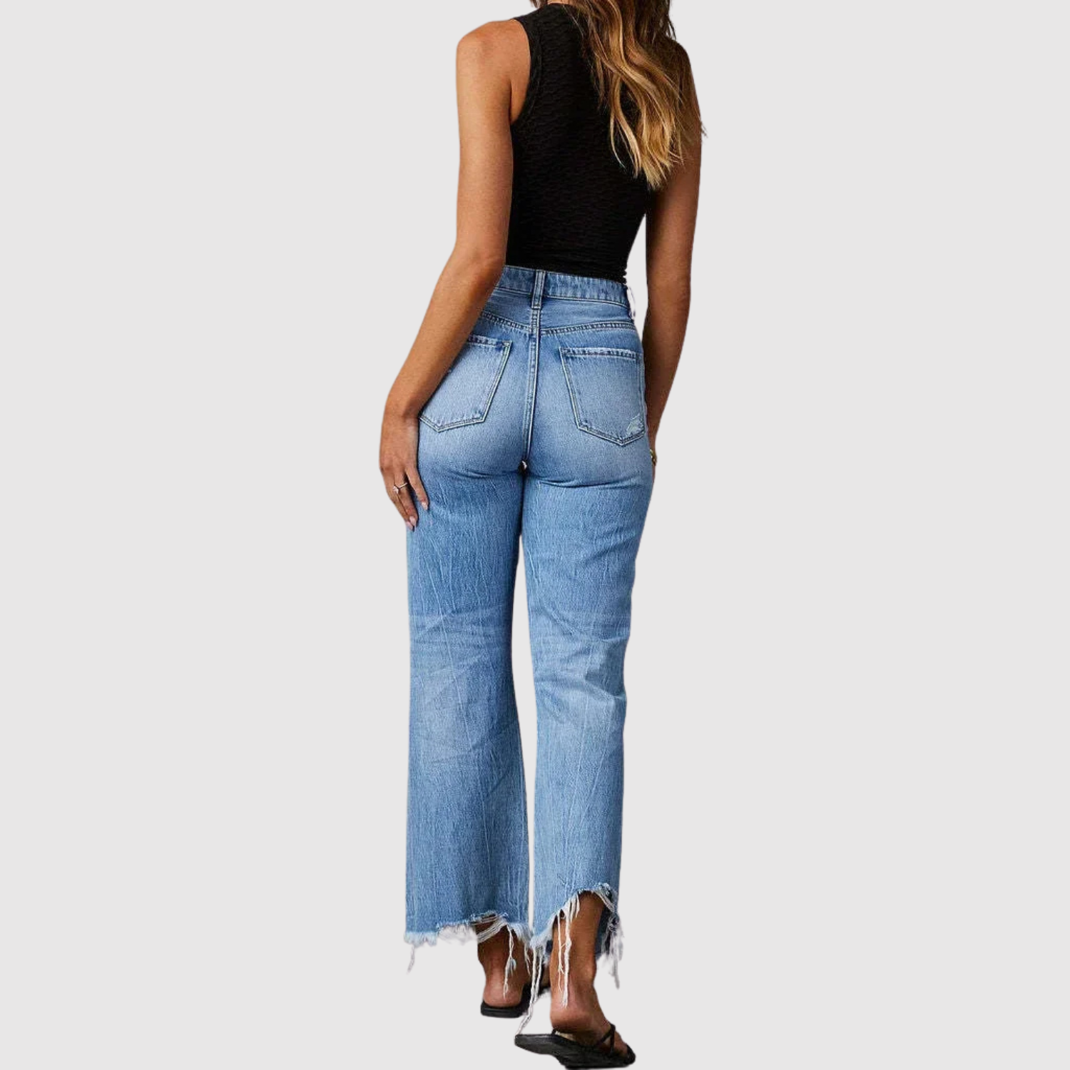 Te dżinsy łączą swobodny wygląd z nowoczesnym flair. Surowe krawędzie nadają edgy styl, idealny zarówno do casualowych strojów, jak i bardziej stylowych kombinacji.