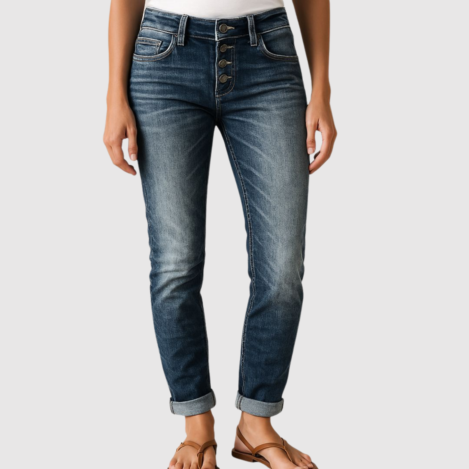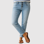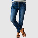 Te wąskie dżinsy łączą klasyczny design z korzystnym krojem. Przyjemnie dopasowują się do ciała i nadają elegancki wygląd, idealny na codzienne noszenie i wieczorne wyjścia. Niezbędnik w każdej szafie.