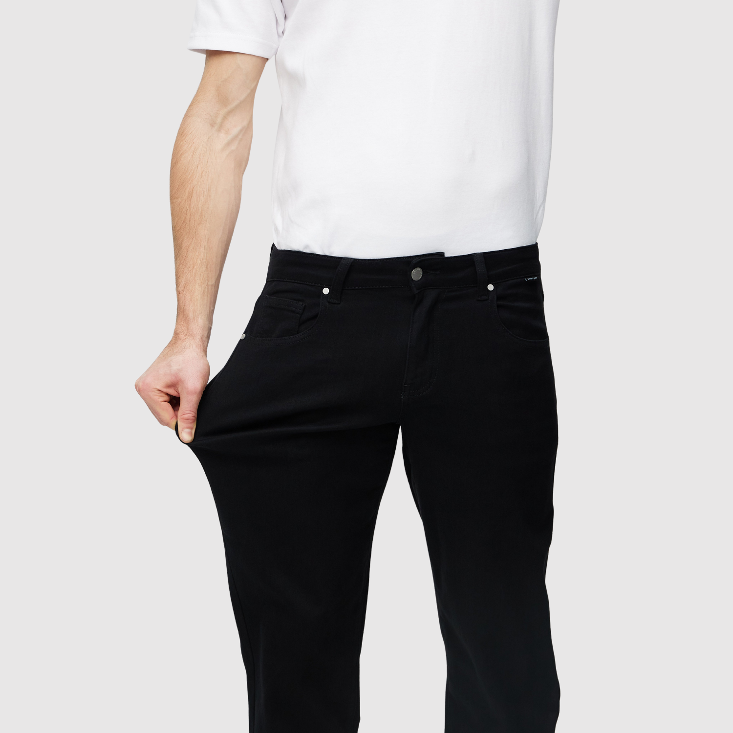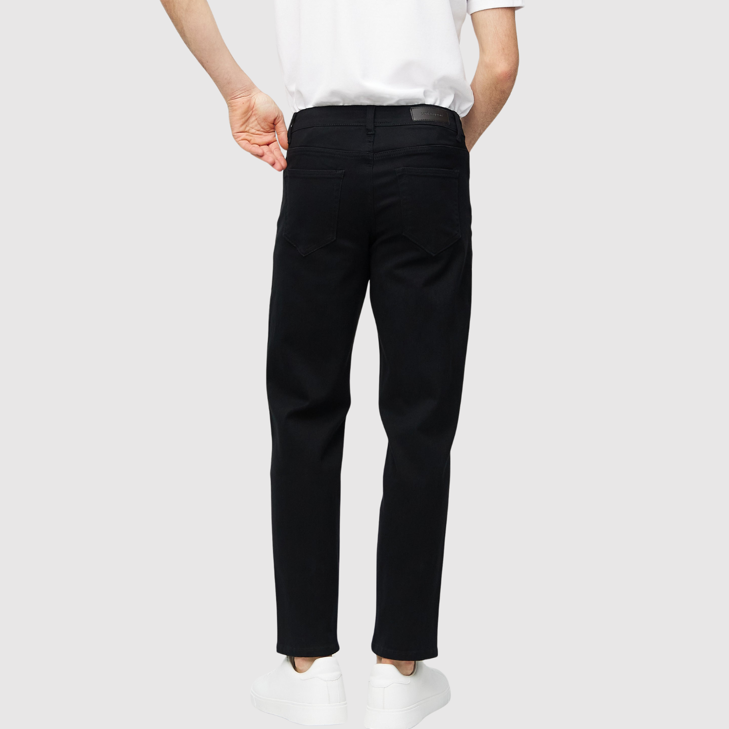 Te czarne dżinsy o normalnym kroju są wykonane z wytrzymałego denimu o elastycznych właściwościach, które zapewniają swobodę ruchów w codziennym życiu. Ponadczasowy krój łączy w sobie wygodę i funkcjonalność, co czyni je niezastąpionym elementem w garderobie.
