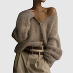 Ten pleciony sweter nadaje wyjątkowy i przytulny wygląd dzięki swojemu ciepłemu materiałowi. Luźny krój i elegancki design sprawiają, że jest idealny zarówno na nieformalne dni, jak i na stylowe okazje.