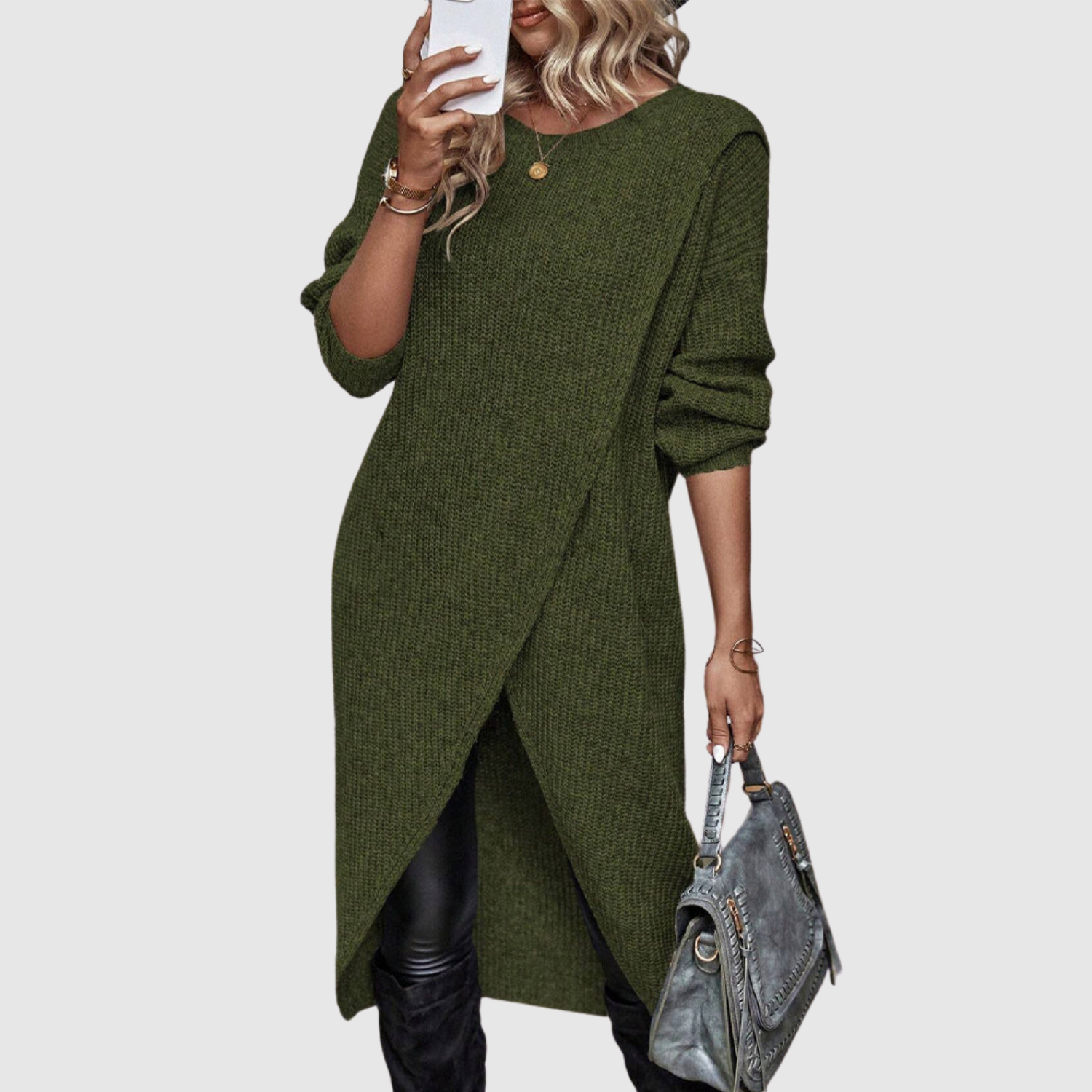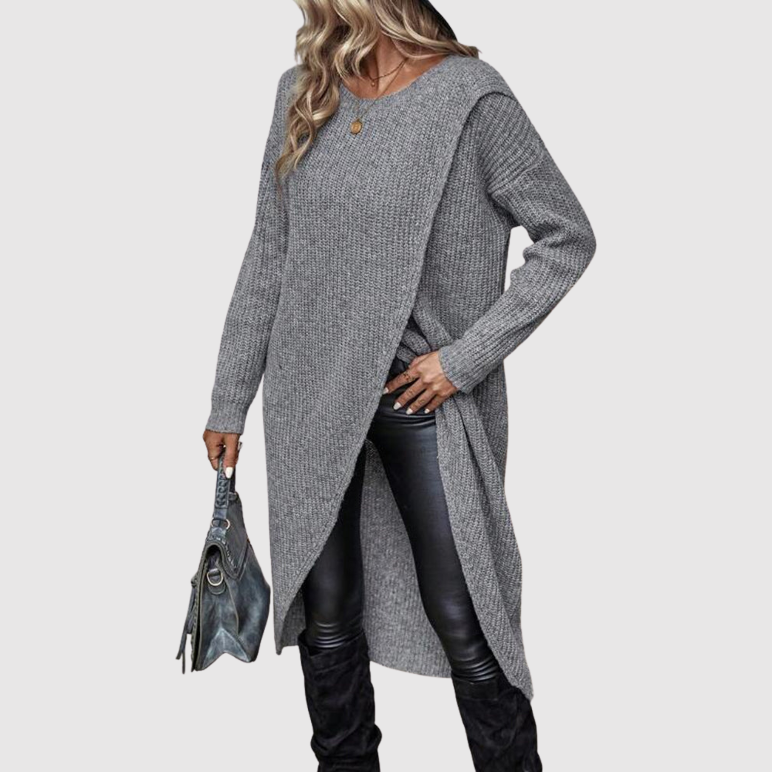 Nora – Elegancka asymetryczna tunika z długim rękawem