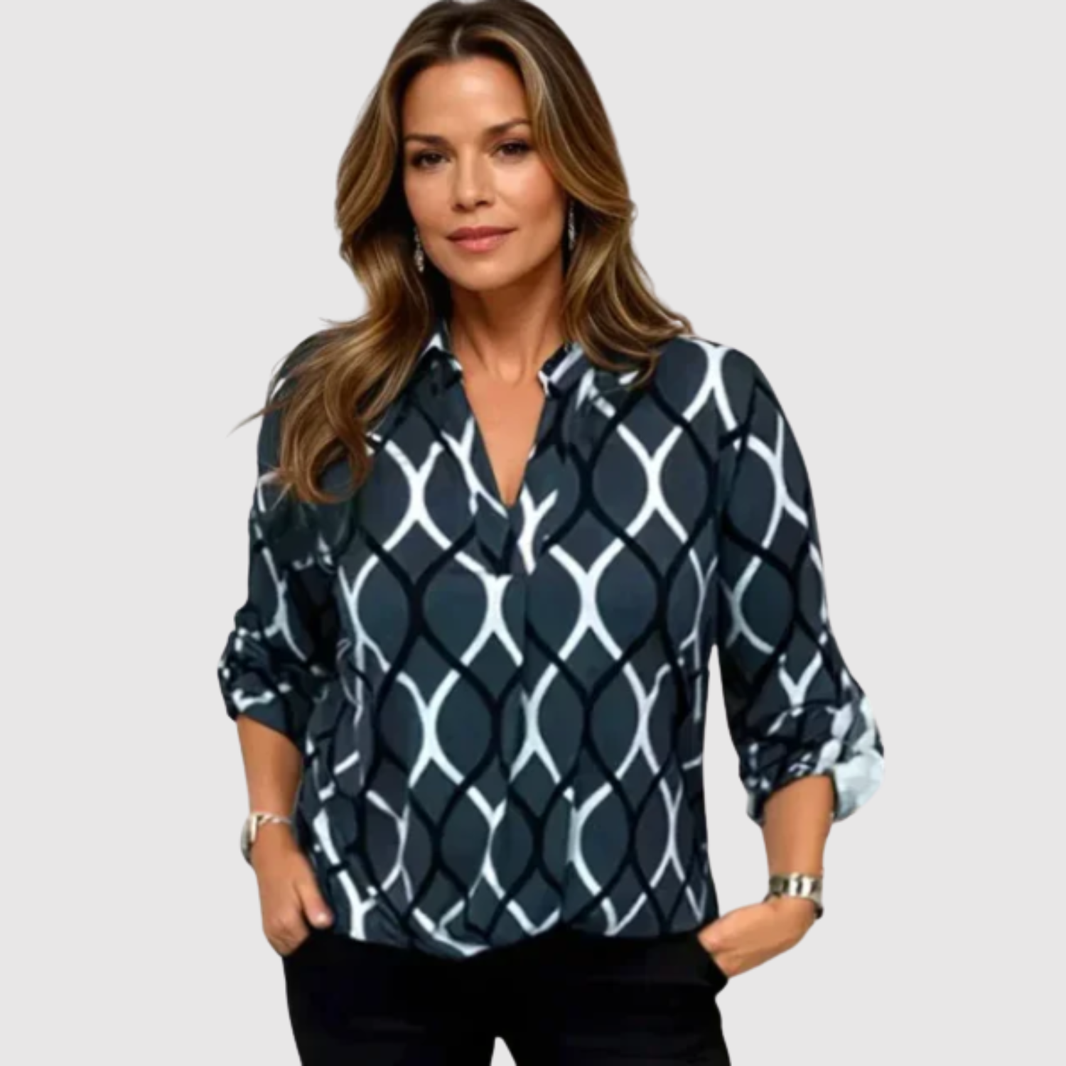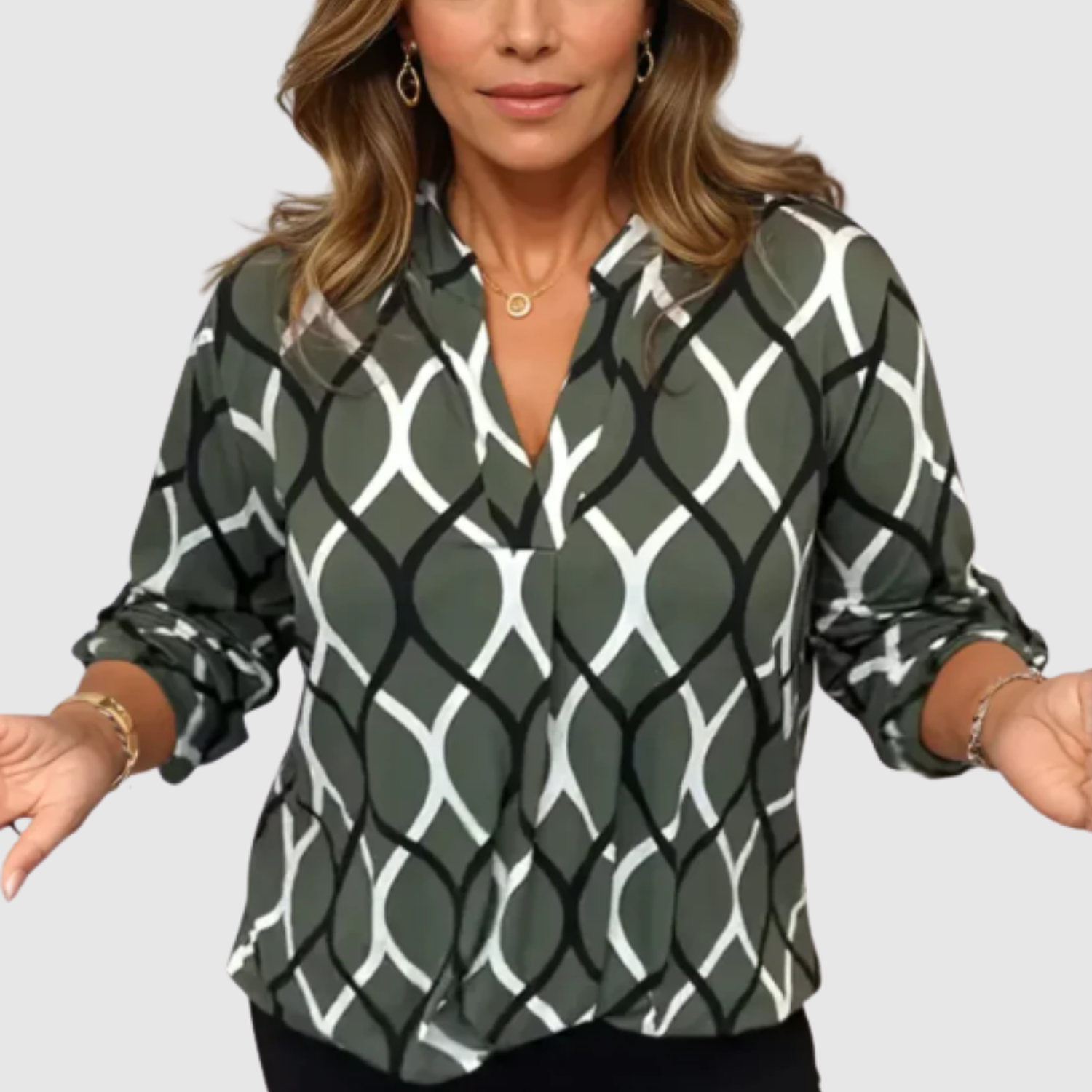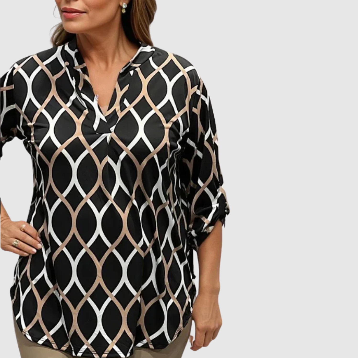 Nora – Elegancka bluzka z geometrycznym nadrukiem