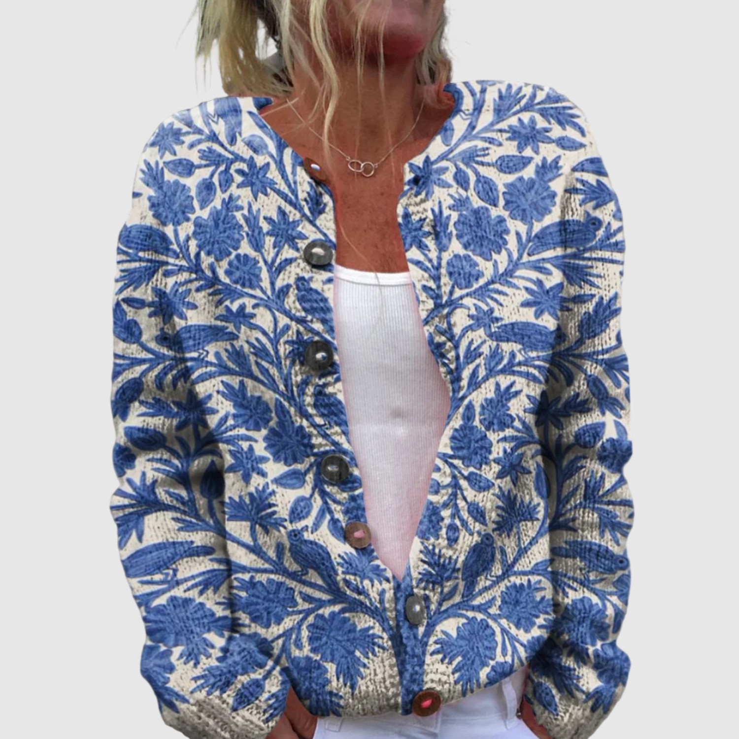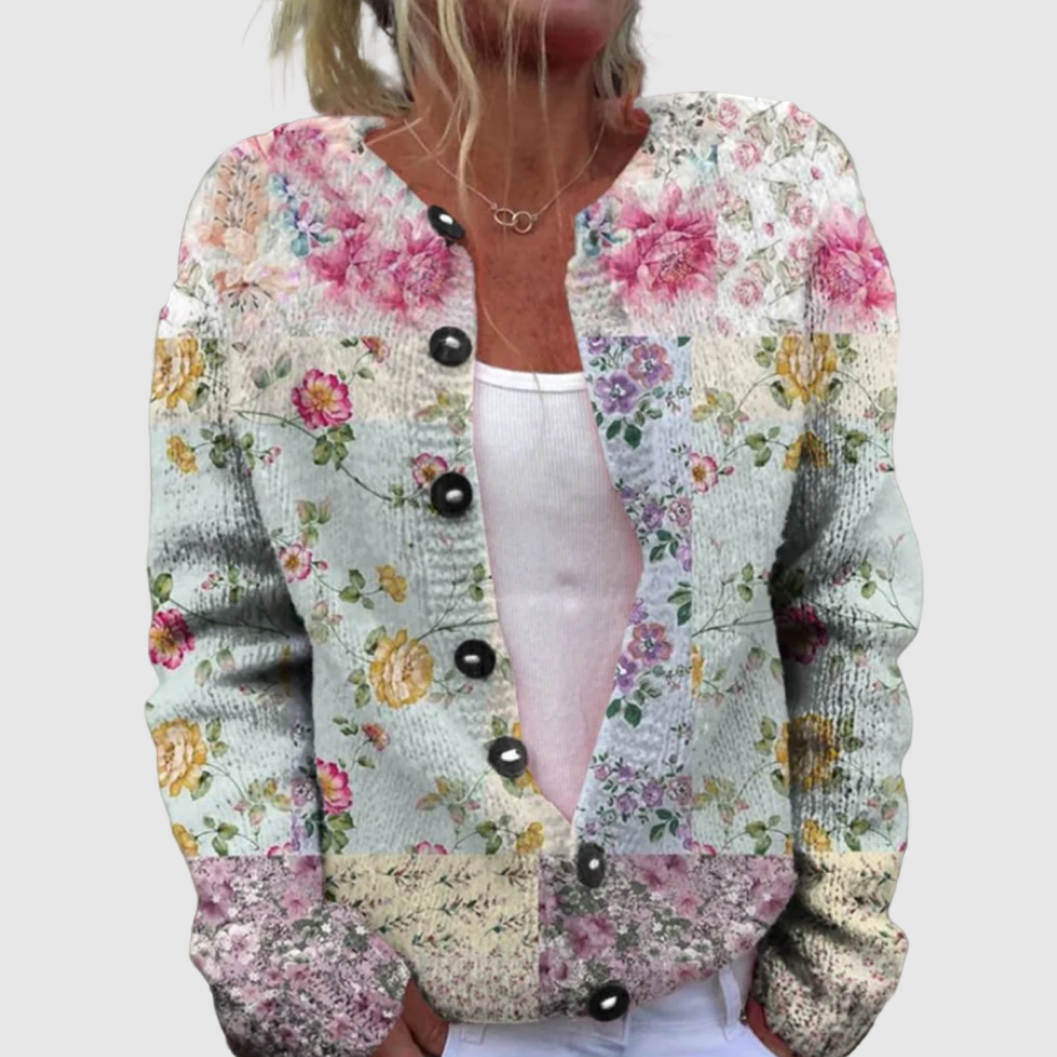 Nora – Kolorowy kardigan w kwiatowy wzór