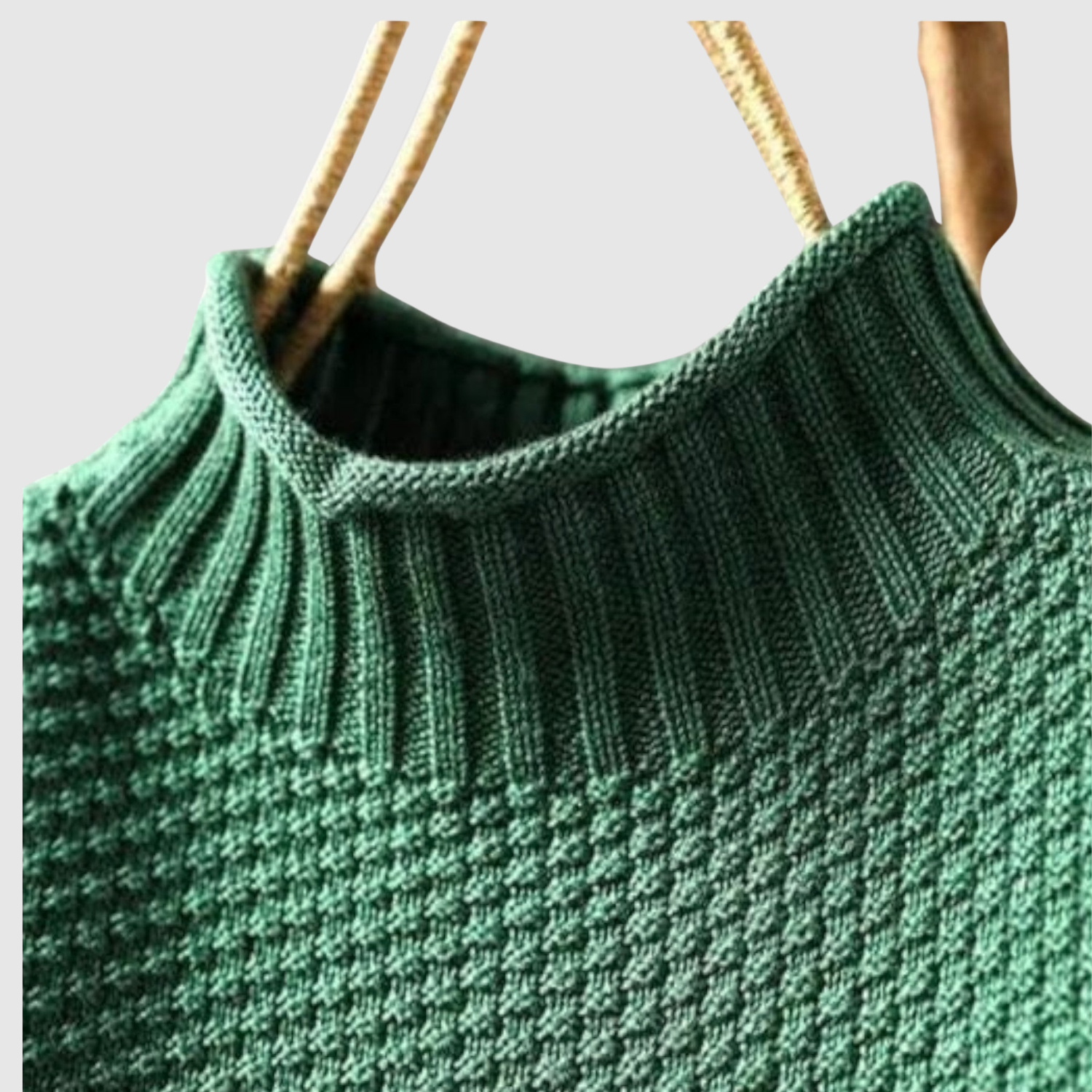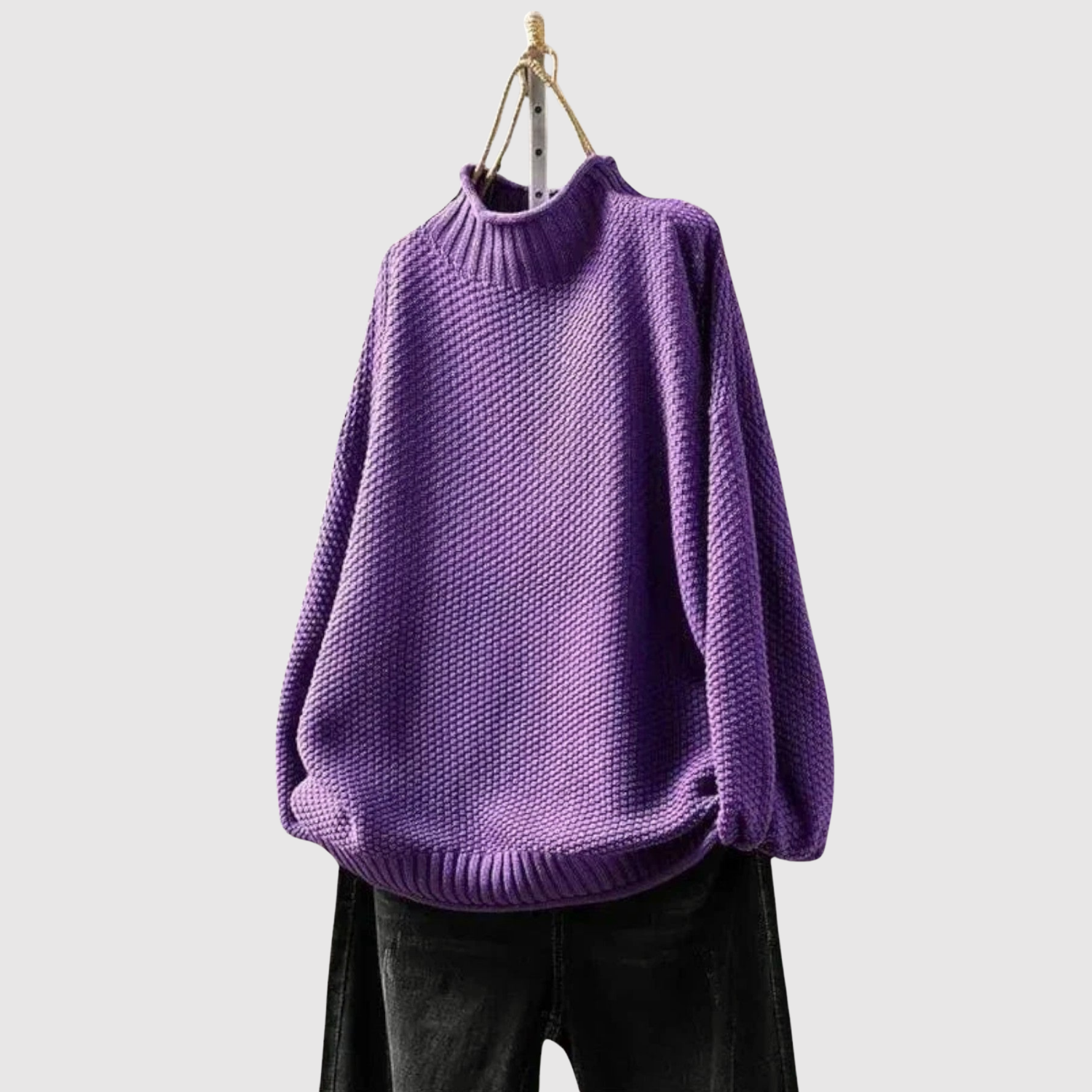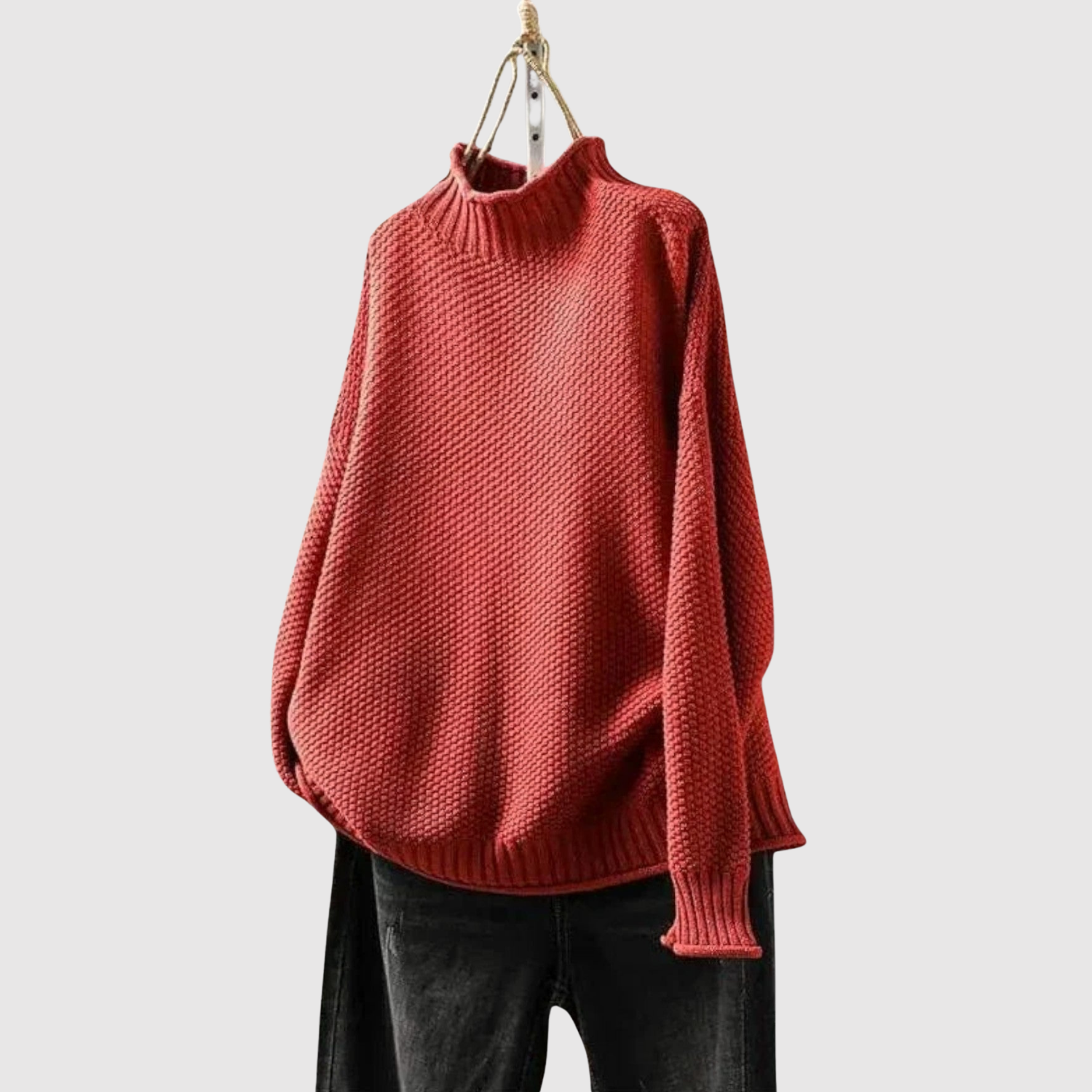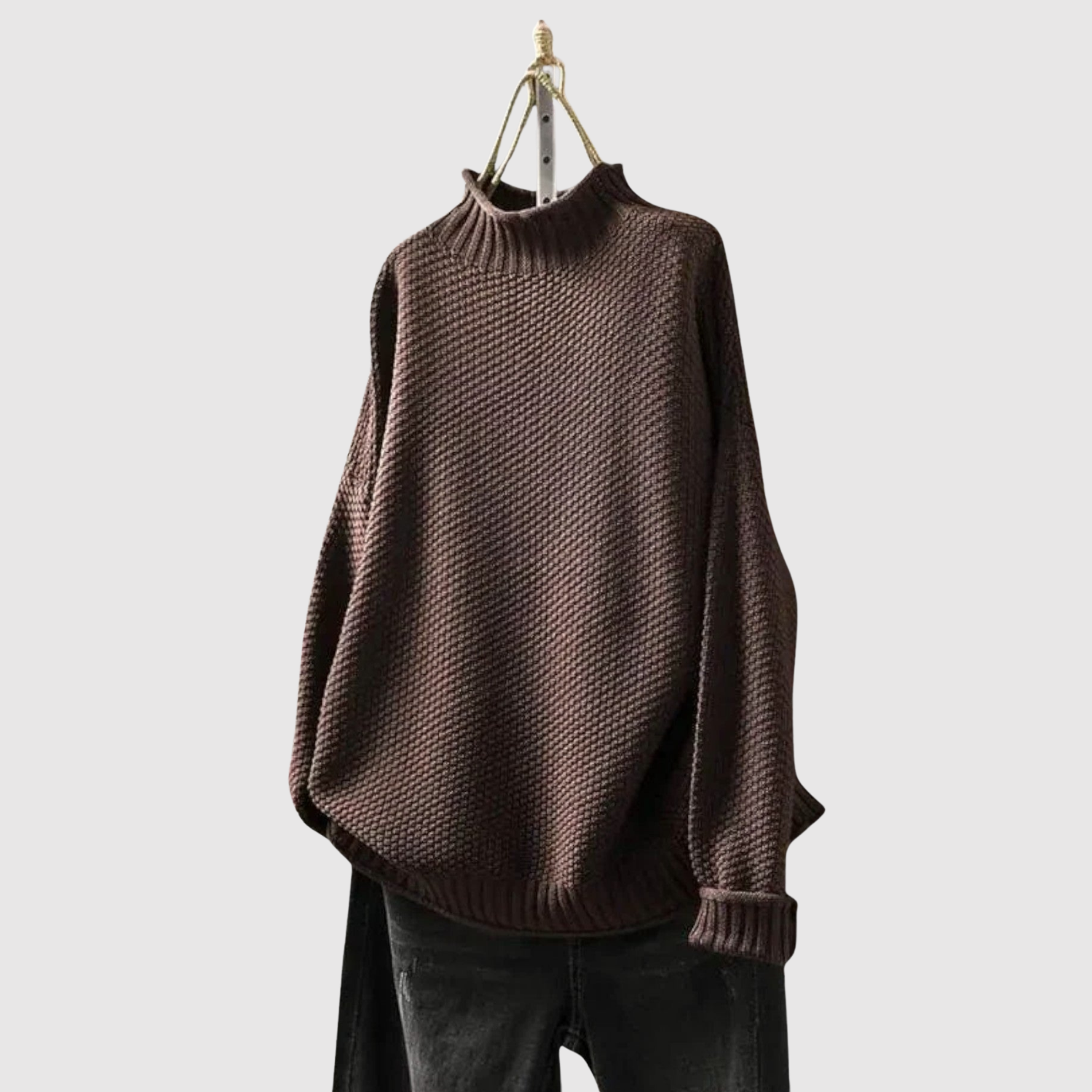 Nora – Strukturalny sweter o luźnym kroju z wysokim kołnierzem