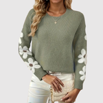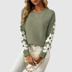 Ten sweter łączy prostotę z urokiem dzięki pięknym kolorowym detalom na rękawach. Miękka jakość zapewnia wysoki komfort, a krój sprawia, że jest idealny zarówno na codzienne noszenie, jak i na bardziej stylowe okazje.