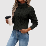 Ten sweter ma klasyczny wzór w warkocze i wysoki kołnierz, który oferuje zarówno ciepło, jak i styl. Wąski krój i miękka jakość sprawiają, że jest idealny do codziennego noszenia i warstwowych stylizacji.