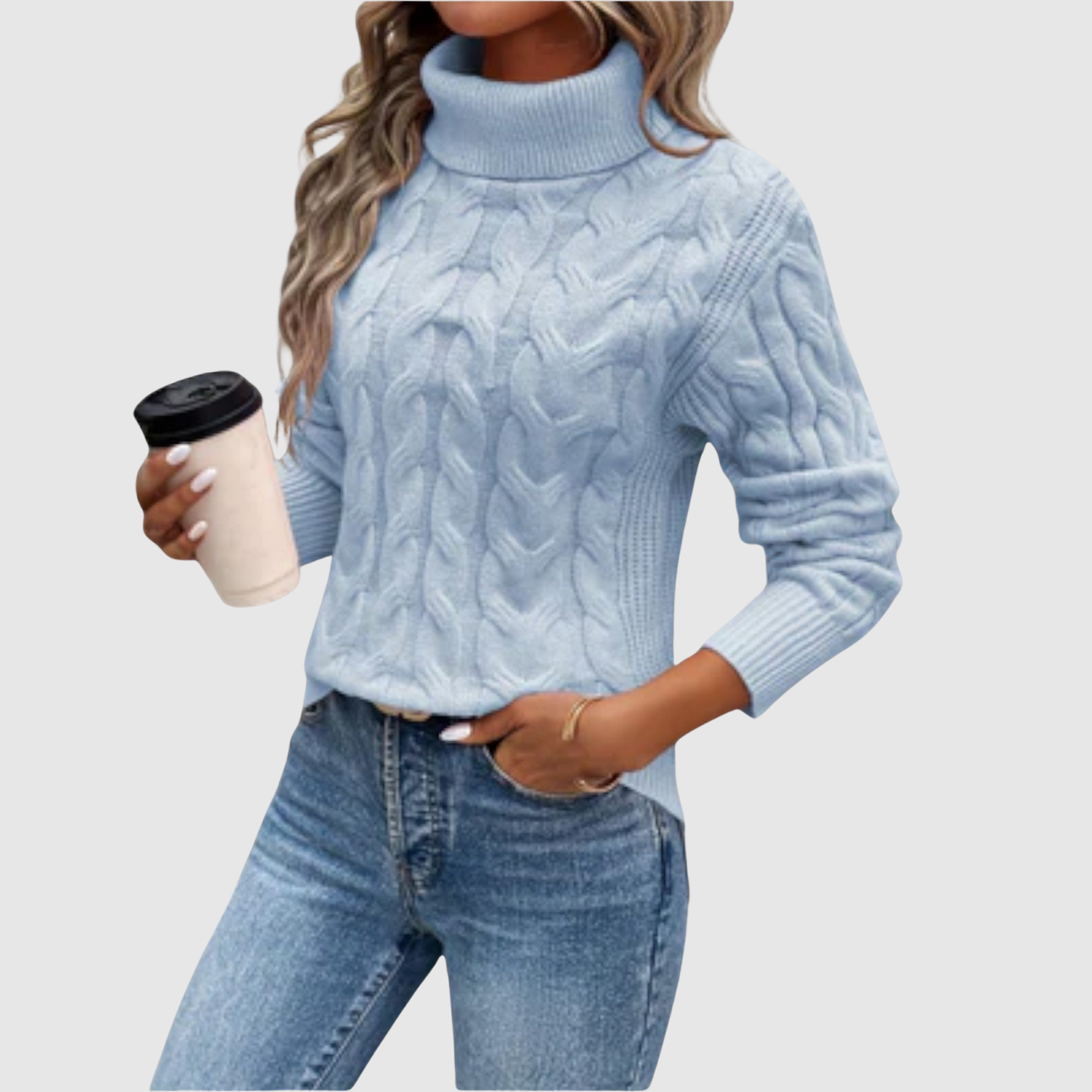 Nora – Sweter z wysokim kołnierzem i kobiecą sylwetką