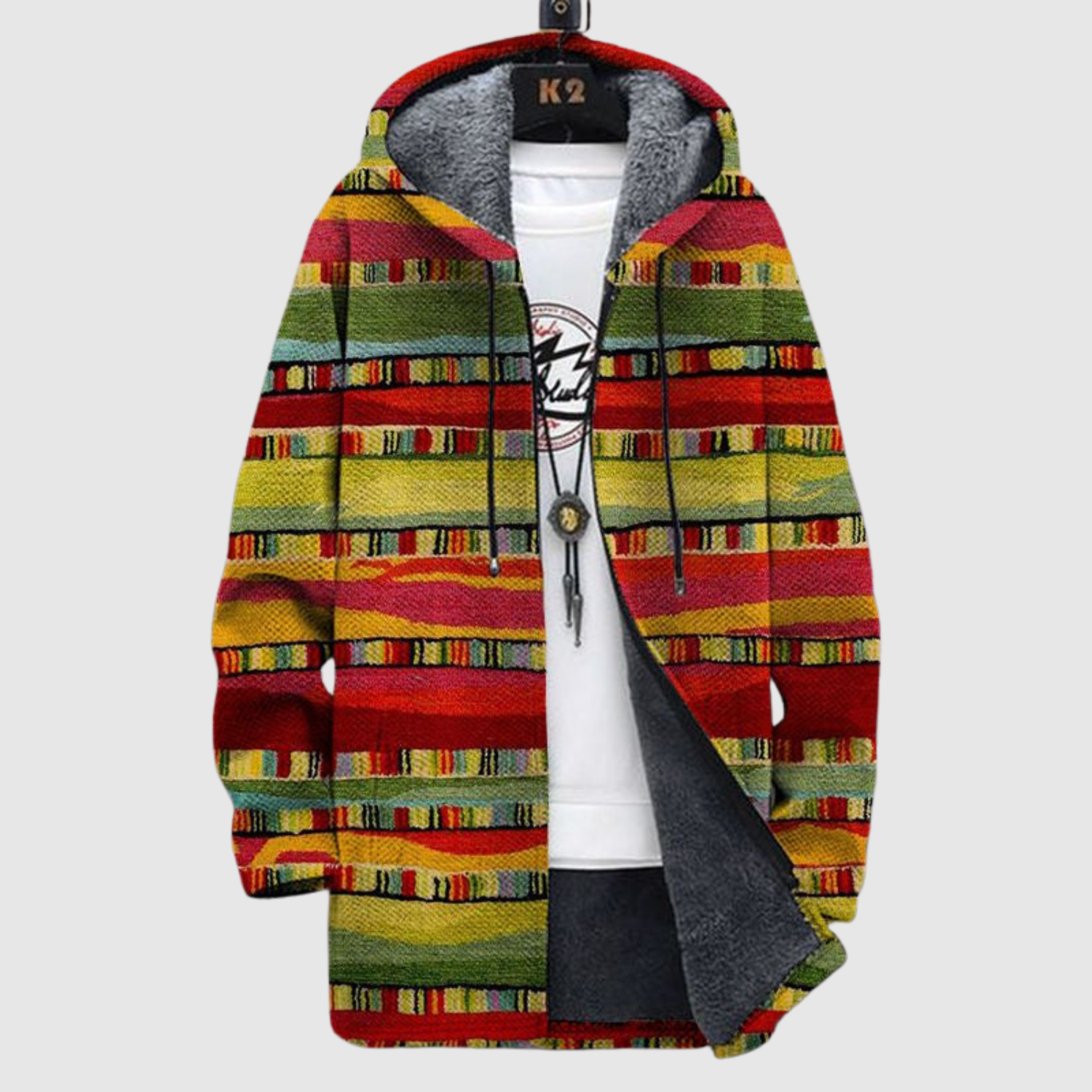Ta bluza łączy etnicznie inspirowane linie oraz ciepłe czerwone i żółte odcienie w harmonijnym designie. Miękka wewnętrzna podszewka i wygodny krój sprawiają, że jest idealna na co dzień, gdzie styl i komfort idą w parze.