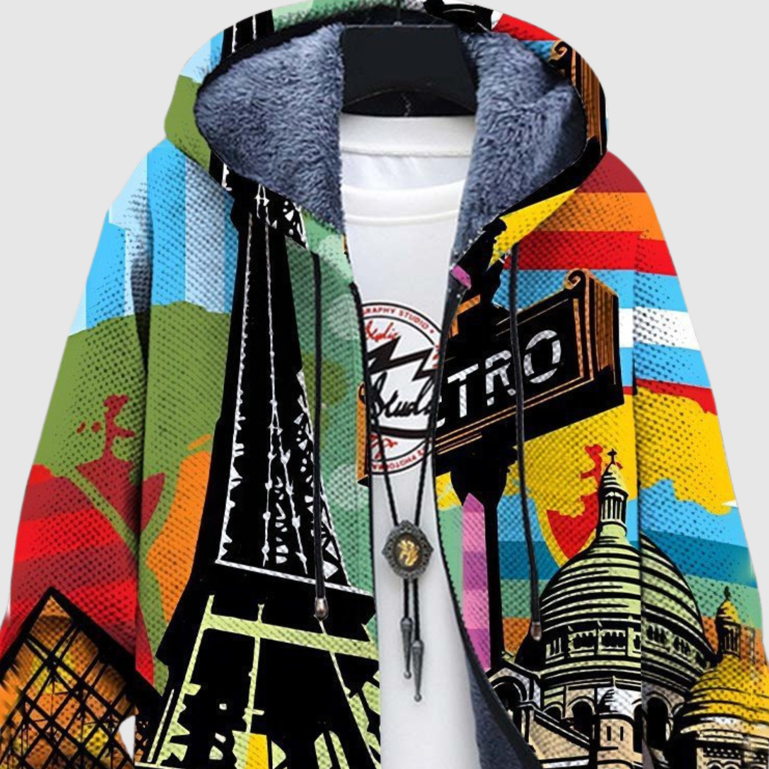 Ta bluza łączy ikoniczne elementy Paryża z nowoczesnymi kolorami pop-art. Jest idealna dla Ciebie, jeśli kochasz modę z charakterem – design, który łączy komfort, kreatywność i odrobinę francuskiego uroku.