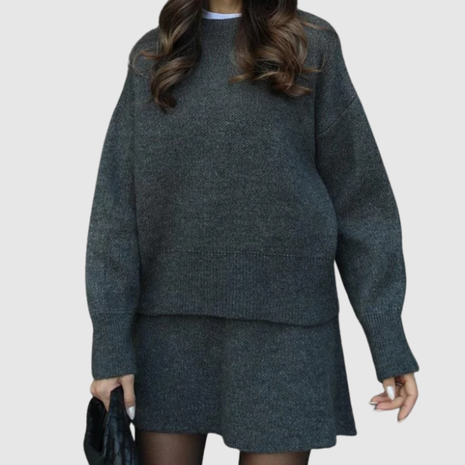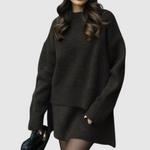 Ten damski komplet łączy stylową kurtkę z pasującą spódnicą, tworząc doskonały i elegancki wygląd. Idealny do biura, na kolacje lub specjalne okazje. Komfort i design spotykają się w ponadczasowym stroju, który podkreśla Twój kobiecy styl.