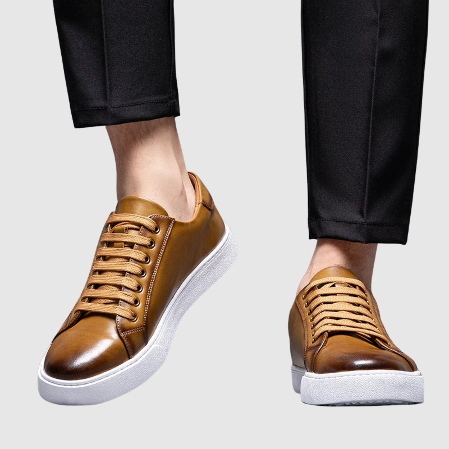 Dla nowoczesnego mężczyzny, który szuka stylu, nie rezygnując z komfortu, te skórzane trampki są idealnym wyborem. Zaprojektowane tak, aby pasowały do każdej stylizacji, oferują czysty i wyrafinowany wygląd z miękkim i pewnym krokiem. Doskonałe do codziennego noszenia, na nieformalne wyjścia, a nawet do bardziej wyszukanych stylizacji.