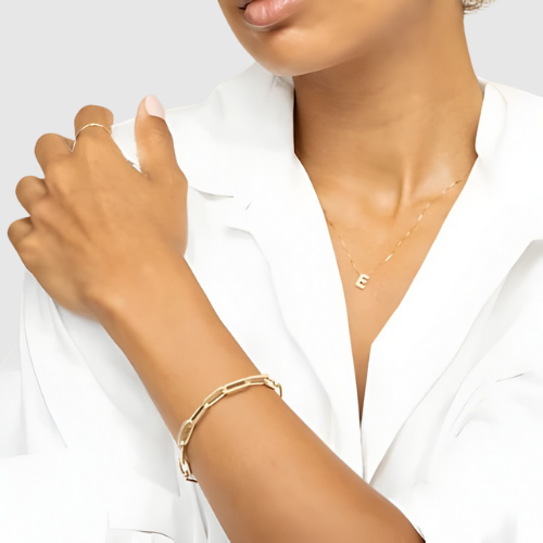 Ten elegancki naszyjnik z inicjałem według Twojego wyboru został stworzony, aby podkreślić Twoją wyjątkowość. Czysty łańcuszek i delikatnie wykonana litera dodają poczucia minimalizmu i kobiecości.