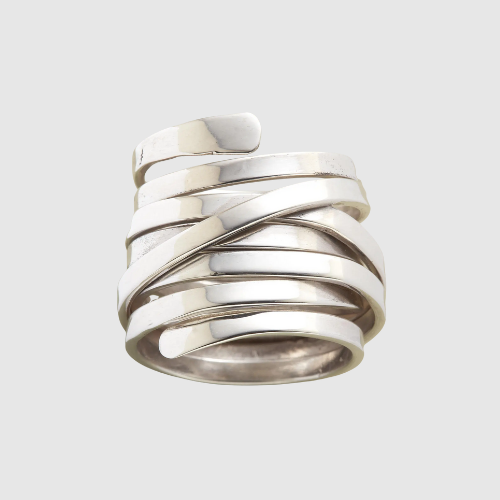 Ten wyjątkowy pierścionek zachwyca wielowarstwowym srebrnym designem, który łączy nowoczesny wygląd z wyrafinowaną prostotą. Wykonany z dbałością o szczegóły, jest idealnym akcentem do każdej stylizacji – od codziennej po wieczorową.