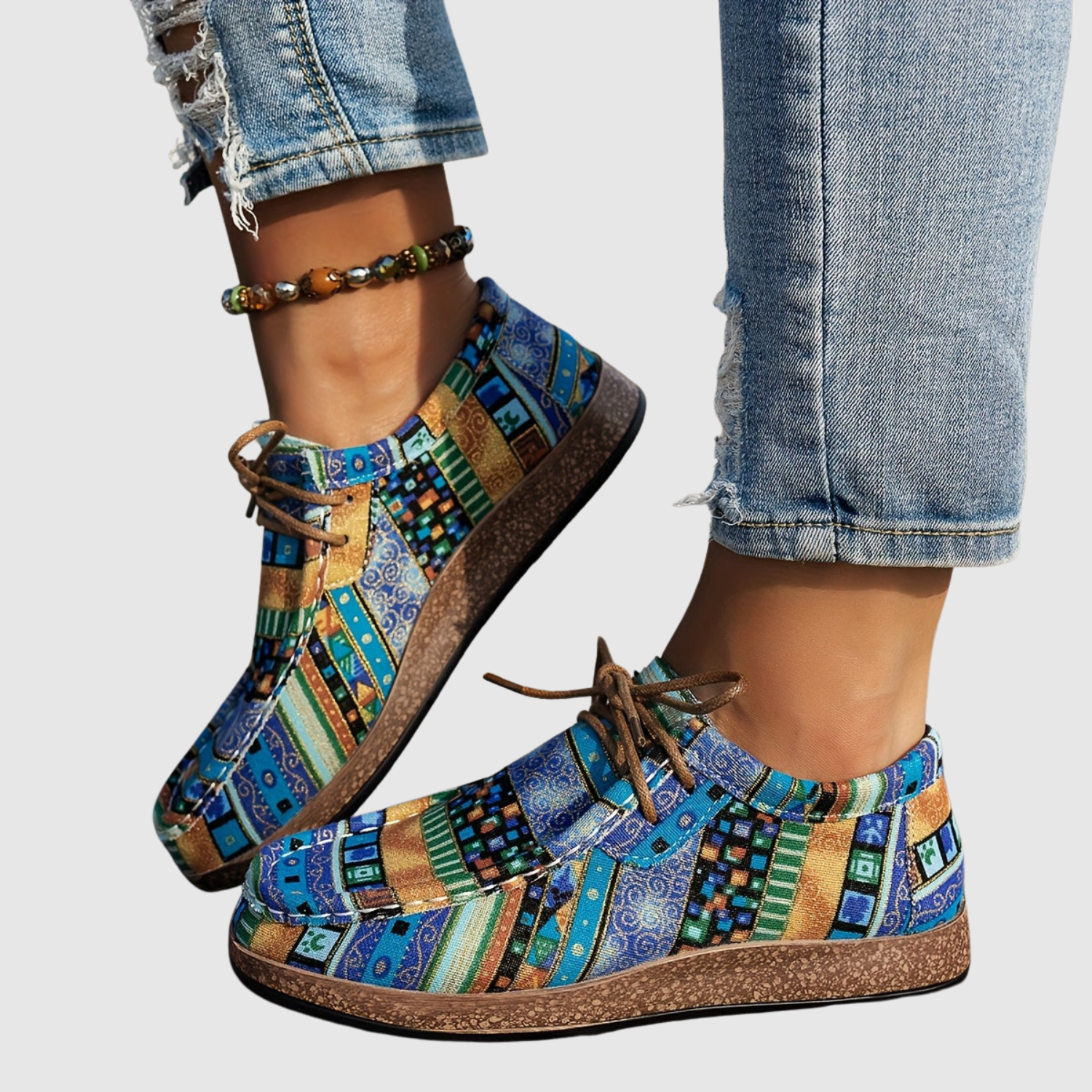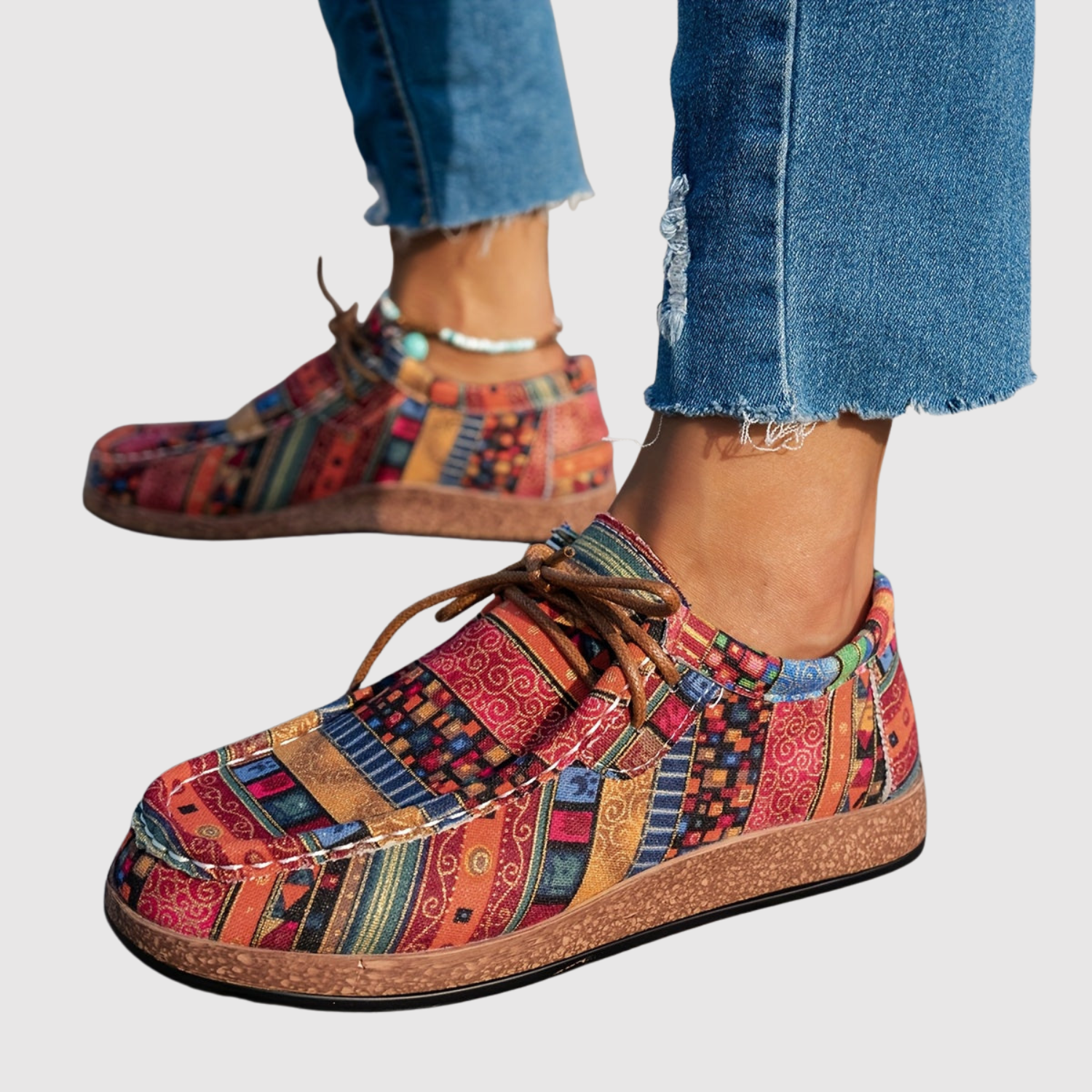 Te damskie buty łączą unikalny etniczny wzór z wygodnym kształtem, idealne dla tych, które kochają kolory i osobisty styl. Elastyczna podeszwa i lekka konstrukcja sprawiają, że są idealne do codziennego noszenia i na wolny czas – niezbędnik dla każdego miłośnika stylu boho.