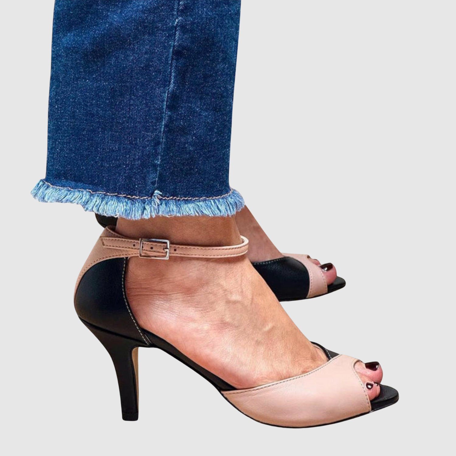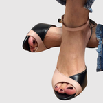 Te sandały łączą gustowne dwukolorowe rozwiązanie projektowe z kobiecym wyglądem z odkrytymi palcami. Regulowany pasek wokół kostki zapewnia stabilność, podczas gdy miękka wkładka oferuje komfort przez cały dzień. Z eleganckim obcasem są idealne zarówno do biura, jak i na wieczorne wydarzenia, gdzie styl i pewność siebie są w centrum uwagi.