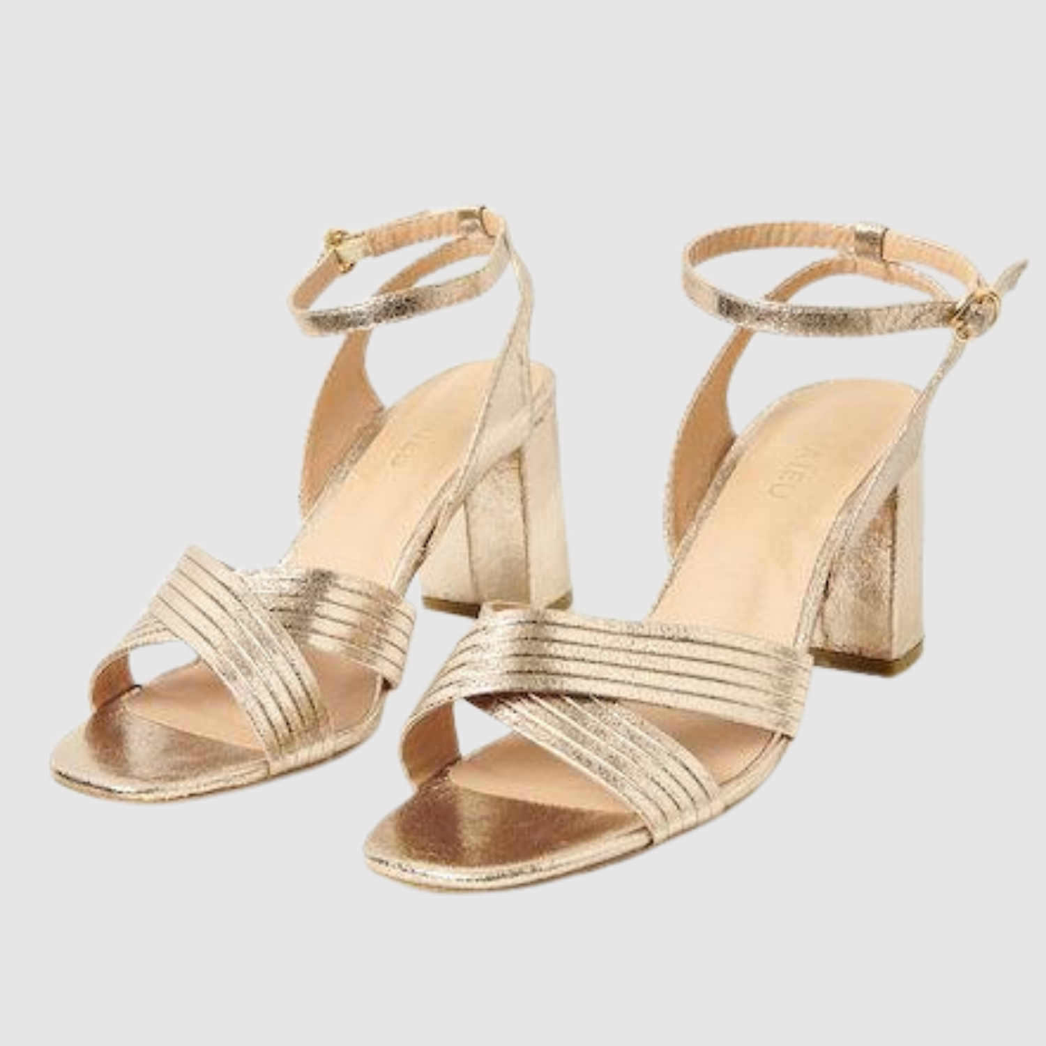 Teodora - Sandały z krzyżowymi paskami i złotym blaskiem