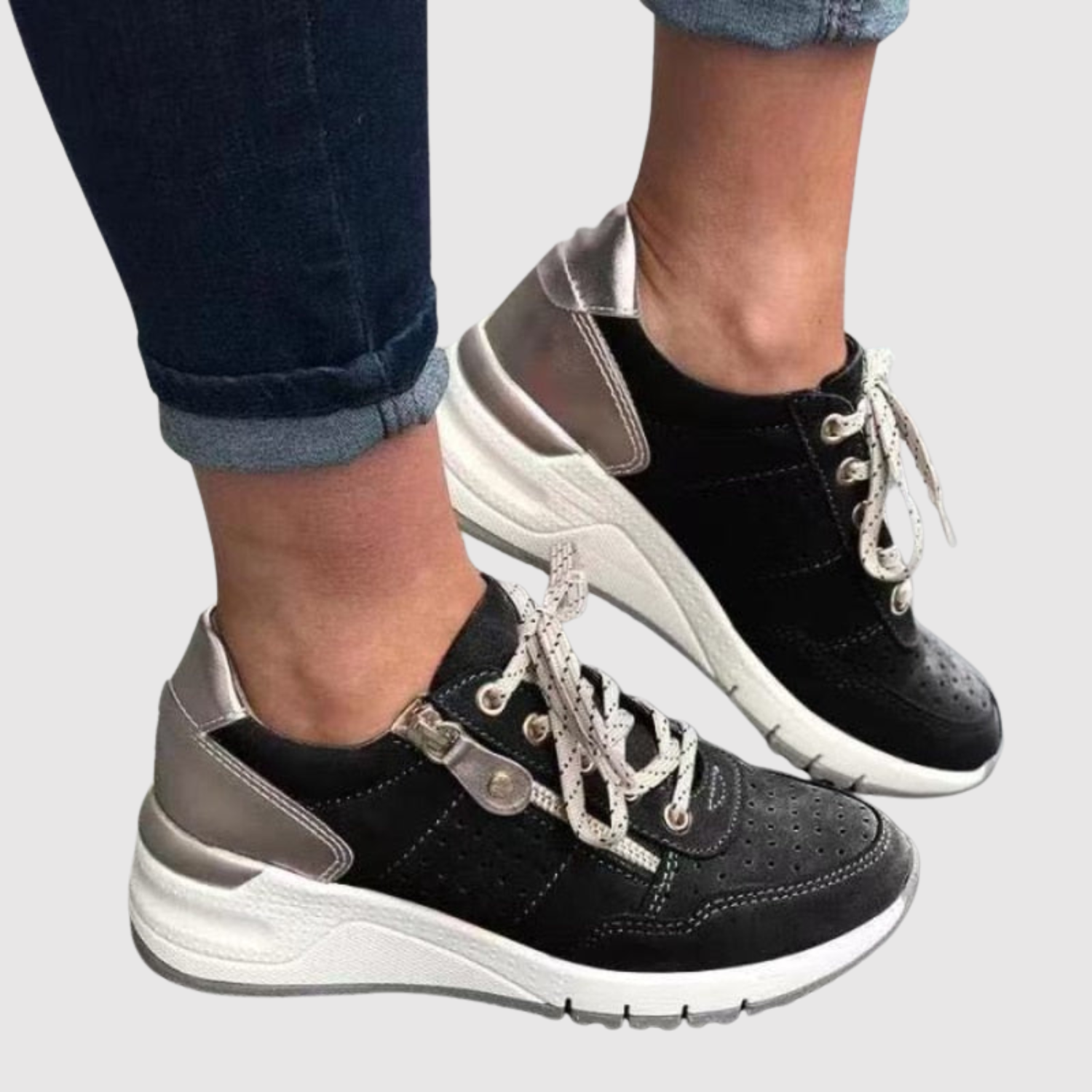 Trampki Klara łączą komfort i funkcjonalność z nowoczesnym wyglądem. Ergonomiczna podeszwa zapewnia wsparcie przez cały dzień, podczas gdy oddychający materiał gwarantuje, że twoje stopy czują się świeżo i komfortowo. Idealne do codziennego użytku i dłuższych spacerów.
