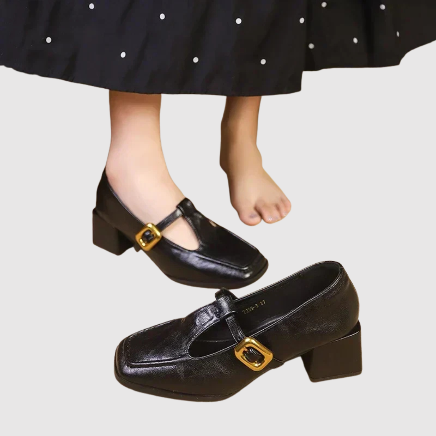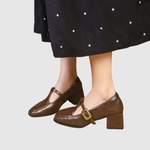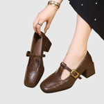 Te eleganckie buty na niskim obcasie łączą vintage urok z nowoczesnym komfortem. Model wykonany jest z miękkiej ekologicznej skóry, ozdobiony delikatną klamrą i kwadratowym noskiem, co nadaje wyrafinowaną sylwetkę. Odpowiednie zarówno na codzienne noszenie, jak i na specjalne okazje – buty, które z łatwością podkreślają kobiecość.