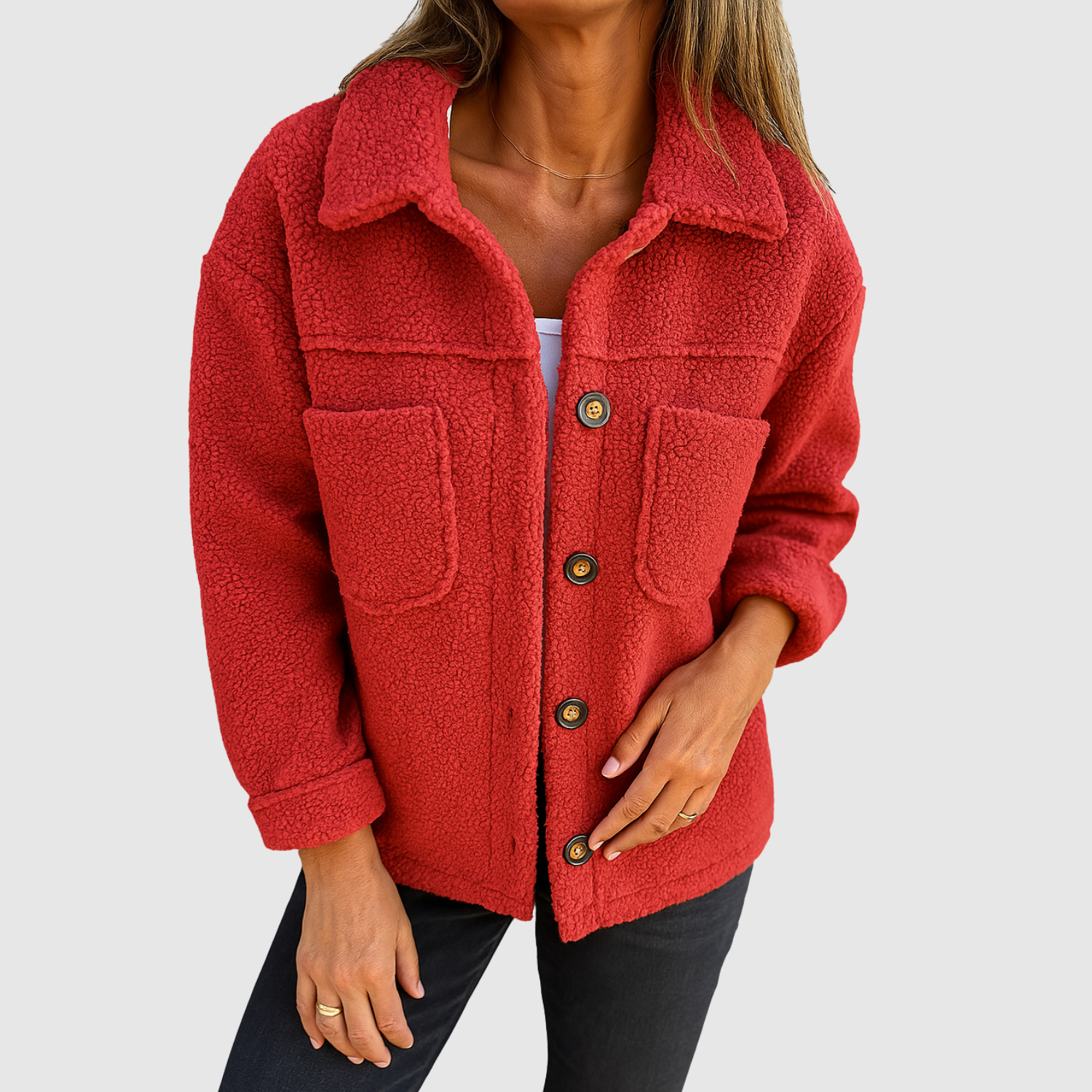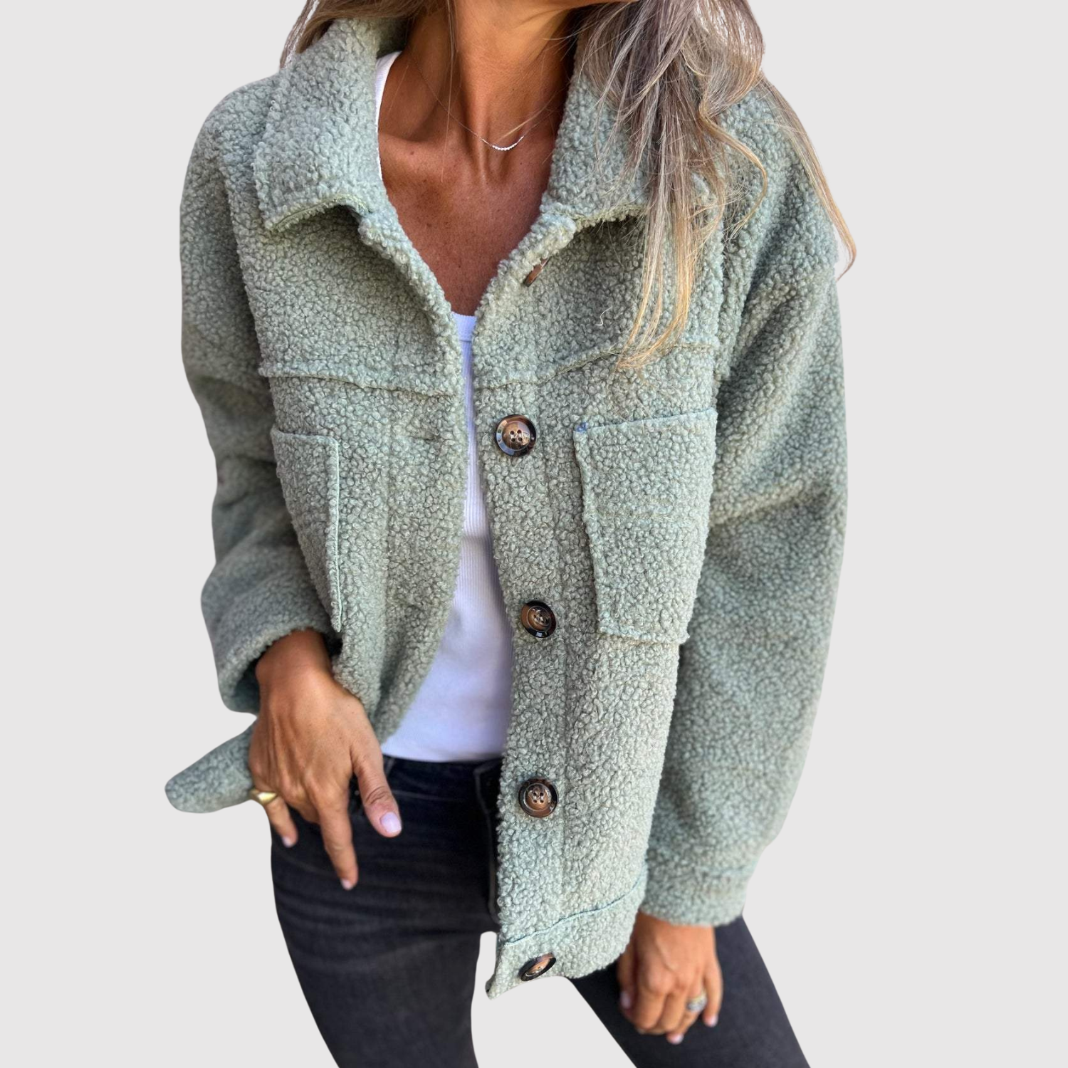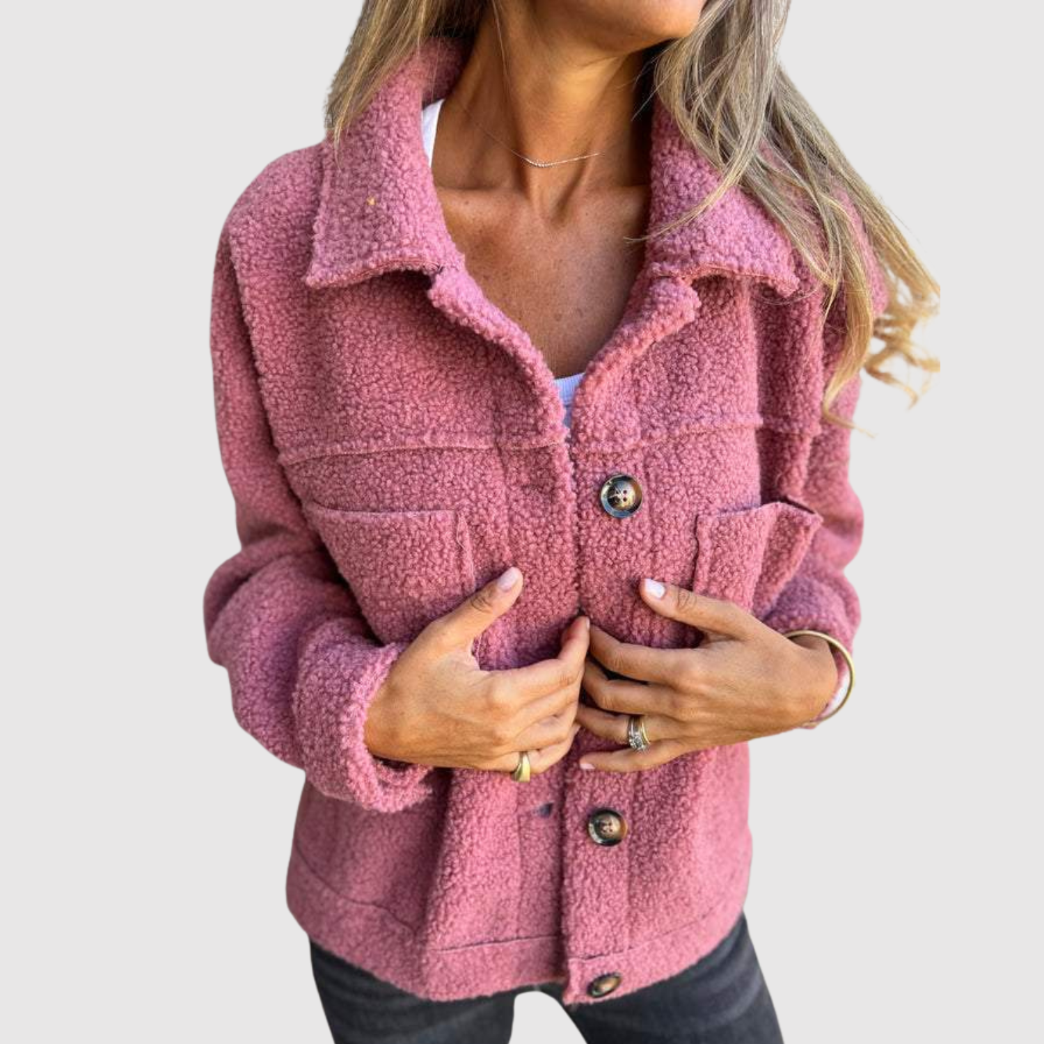 Elena - Teddy kurtka dla kobiet z kieszeniami i guzikami