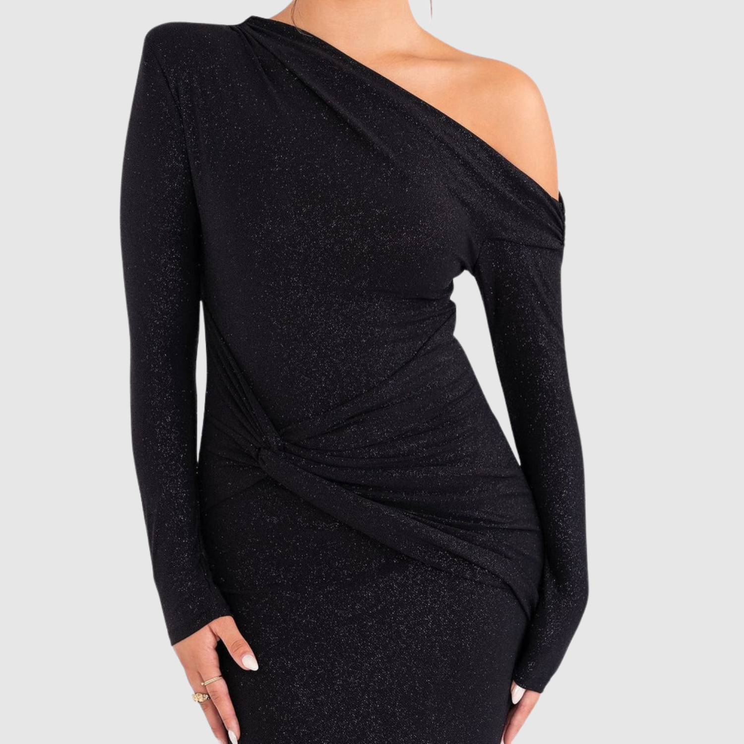 Eliška - Elegancka sukienka na jedno ramię z blaskiem