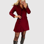 Ta sukienka łączy w sobie wyrafinowaną sylwetkę, plisowany dół i efektowny wygląd, który podkreśla kobiecość. Idealna na kolacje, wydarzenia lub nowoczesny biurowy styl – zawsze wyglądasz pewnie i stylowo.