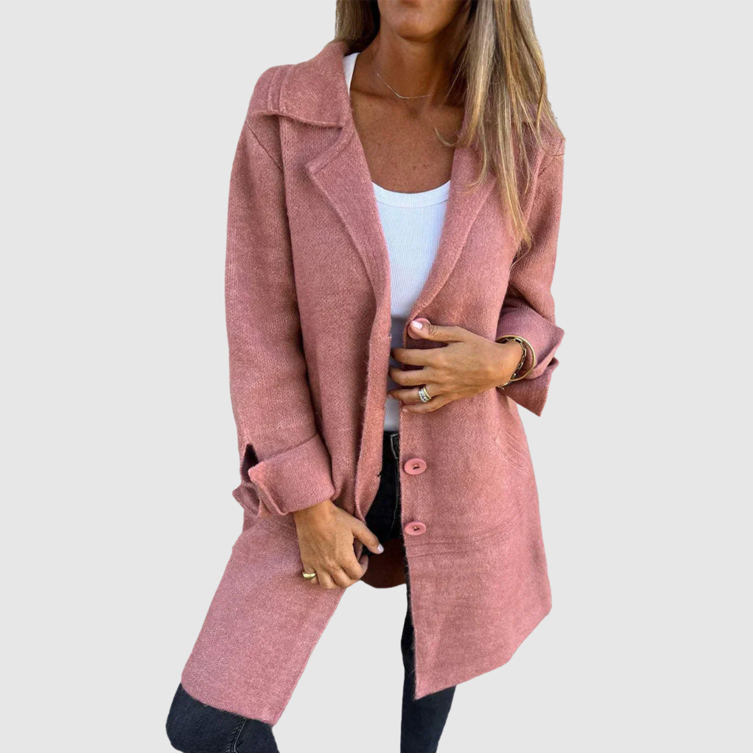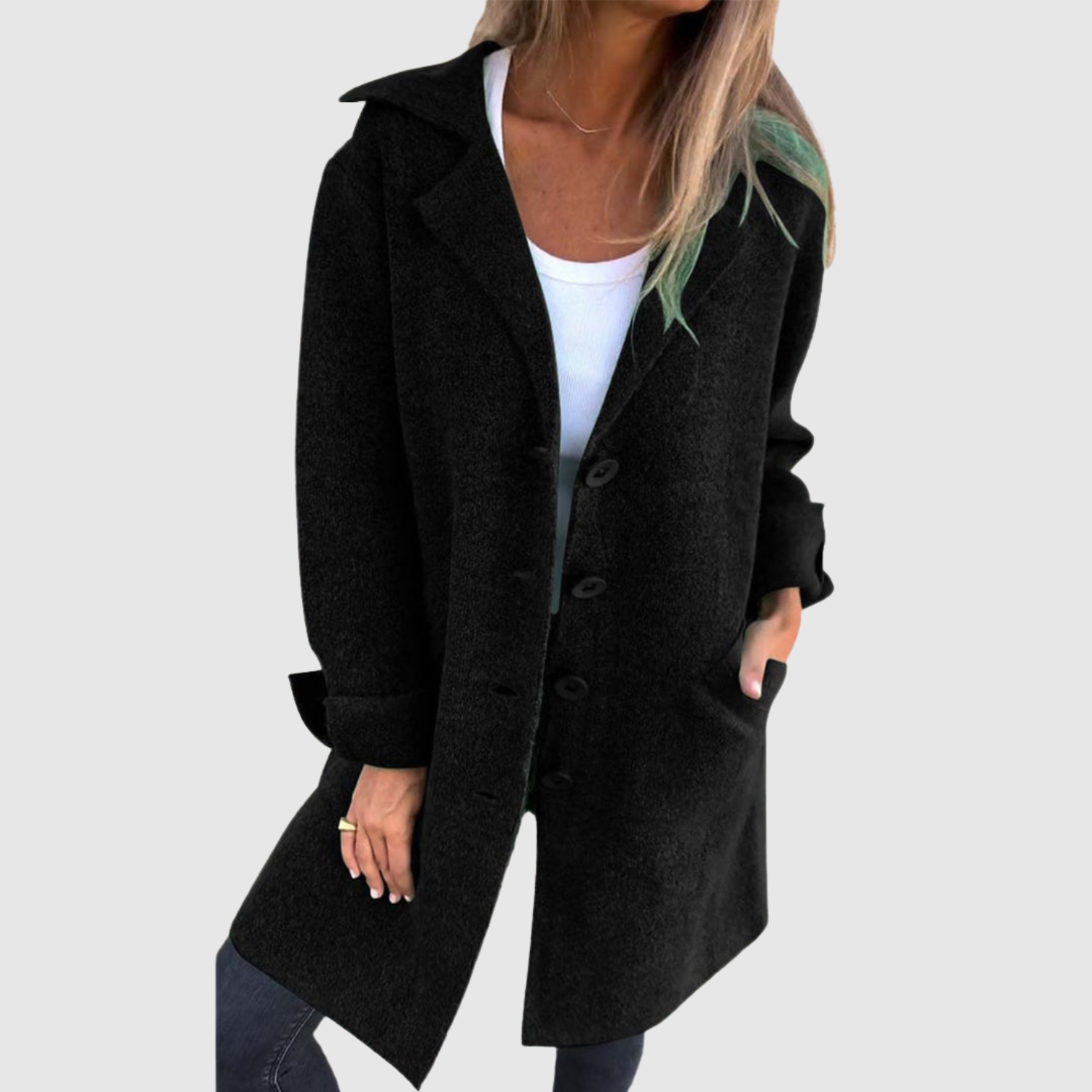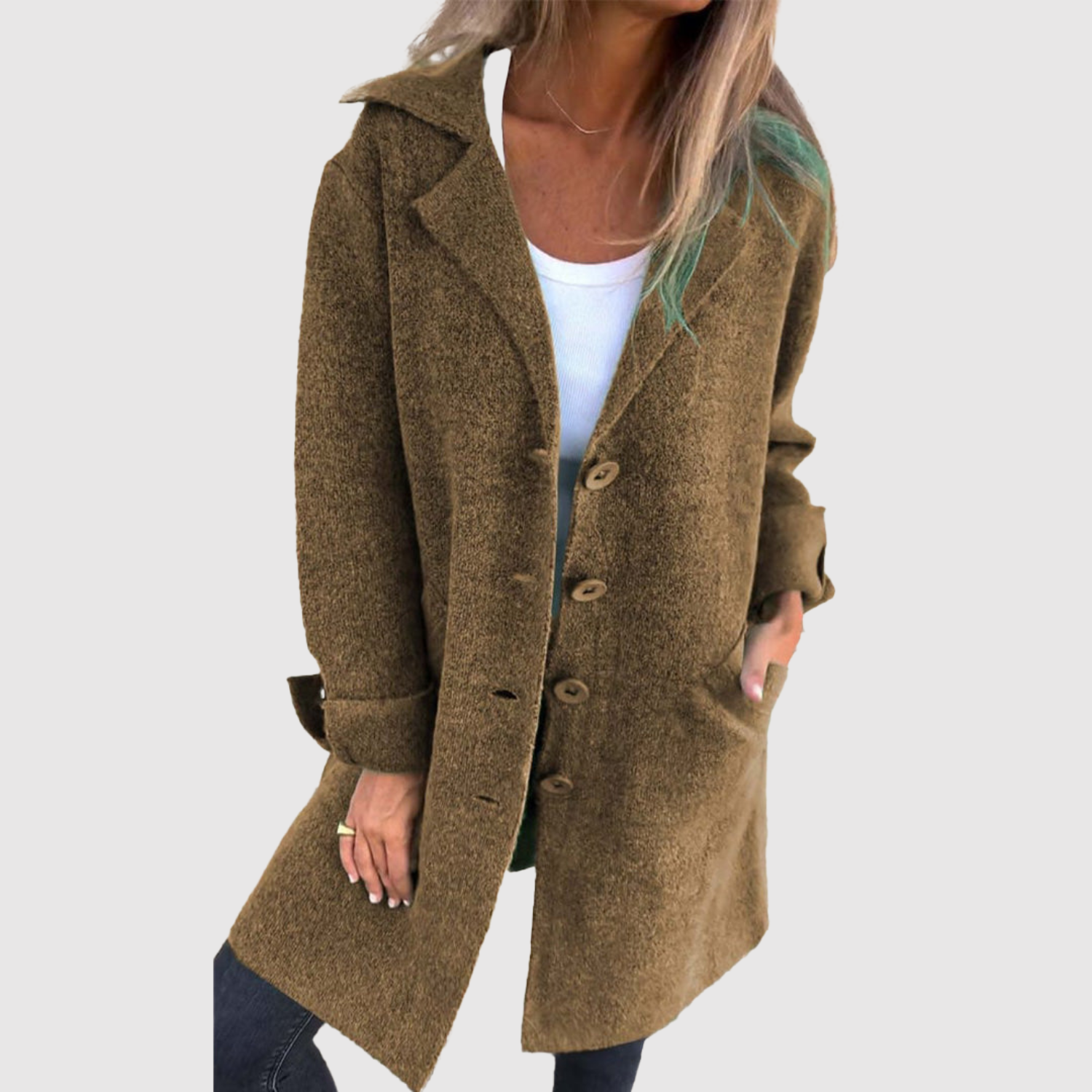 Ten płaszcz łączy komfort, ciepło i stylowy design, idealny na co dzień i chłodniejsze dni. Z długim krojem, praktycznymi kieszeniami i klasycznym zapięciem na guziki jest jednocześnie funkcjonalny i nowoczesny. Idealny do wszystkiego - od pracy po nieformalne spacery po mieście.