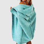 Miękki i ciepły kardigan z kapturem, idealny na chłodne dni. Luźny krój i szerokie rękawy nadają nowoczesny i wygodny wygląd, który łatwo można łączyć zarówno w domu, jak i na zewnątrz.
