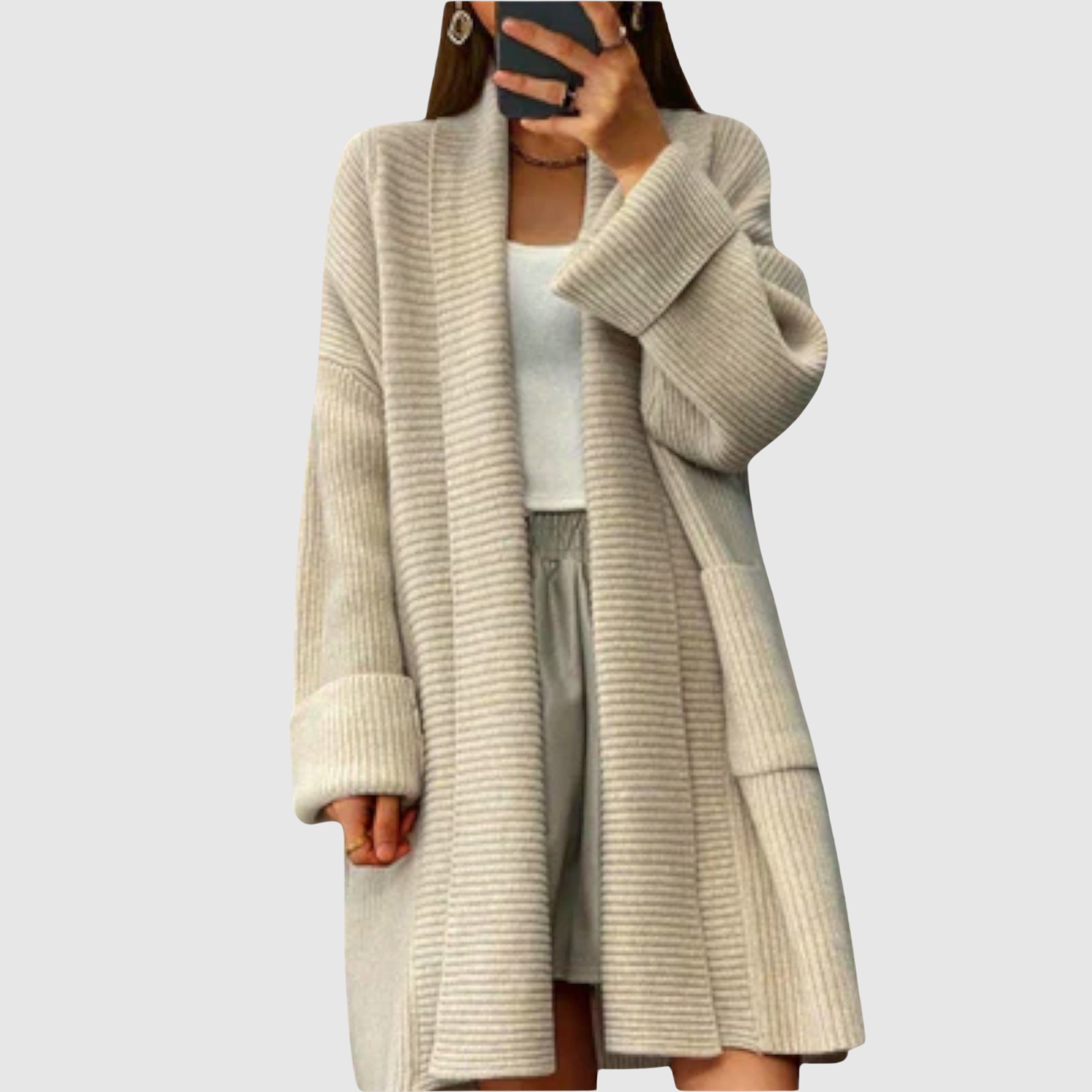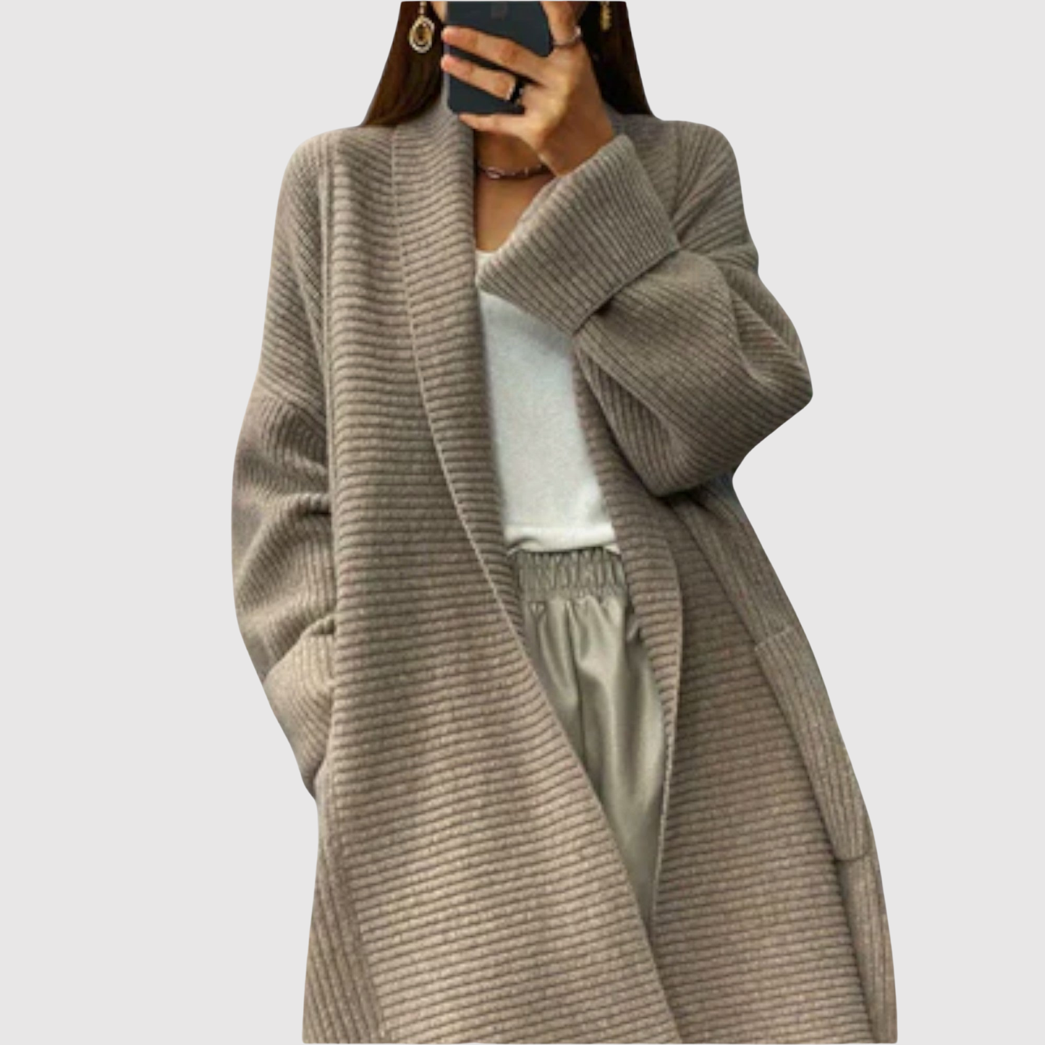 Jelena – Długi pleciony kardigan z ciepłymi rękawami
