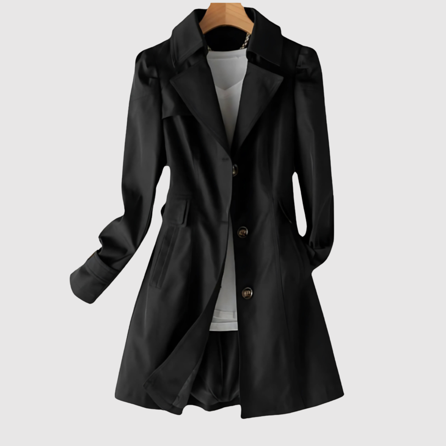 Ten trencz jest uosobieniem elegancji i funkcjonalności. Dzięki swojemu ponadczasowemu designowi, guzikowemu zapięciu i strukturalnemu krojowi jest idealny zarówno na codzienne noszenie, jak i na bardziej formalne okazje. Lekki i wygodny w noszeniu, jednocześnie nadaje wyrafinowany wygląd.