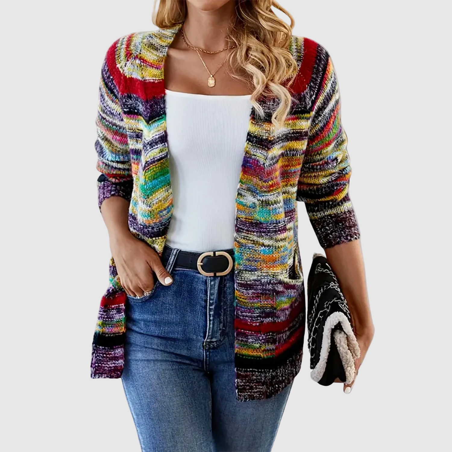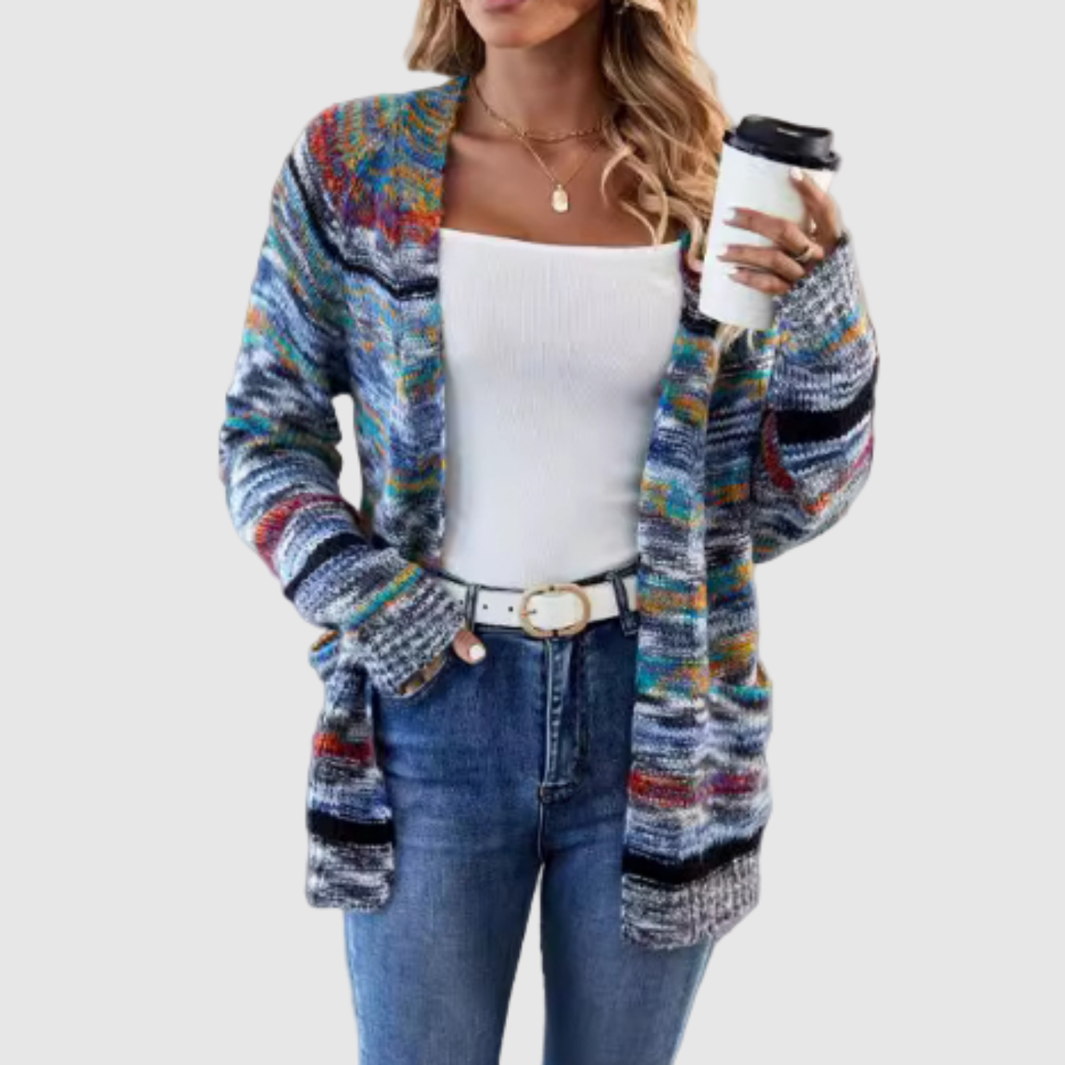 Jelena – Pleciony kardigan z wielokolorowym wzorem