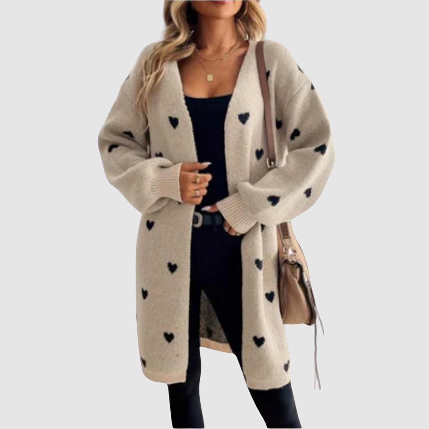 Jelena – Stylowy kardigan z nadrukiem serc