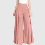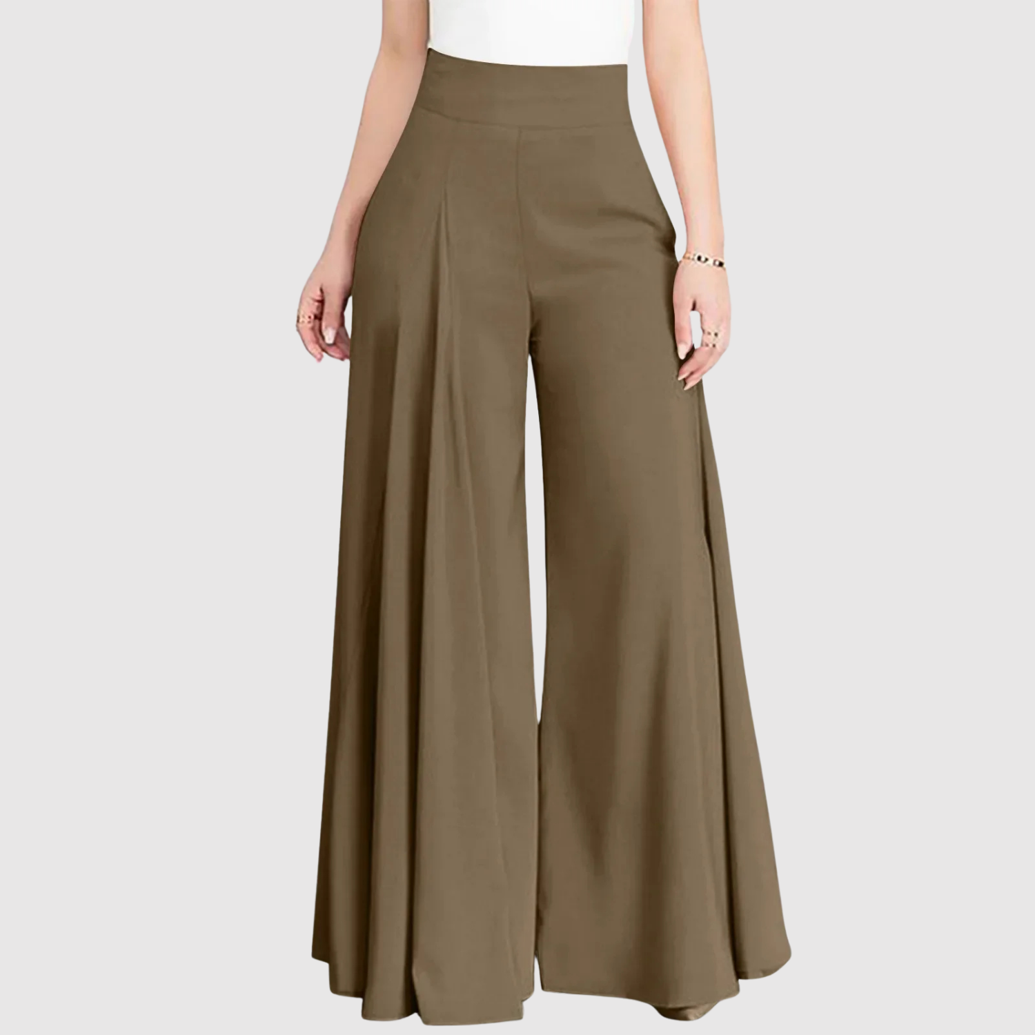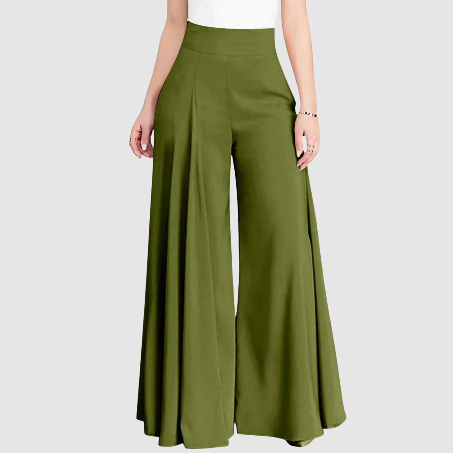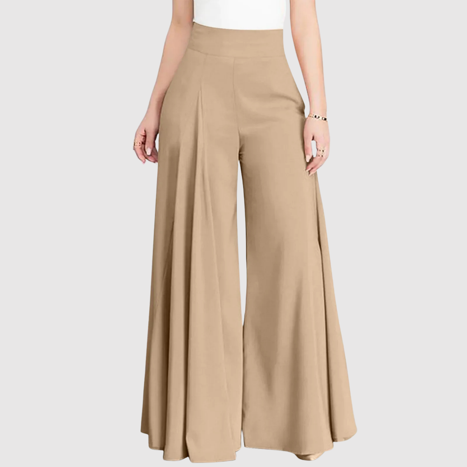 Te szerokie spodnie są wykonane z lekkiego materiału, który zapewnia swobodę ruchów i stylowy wygląd. Idealne na gorące dni lub na nieformalny, elegancki wygląd.
