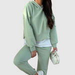 Ten sportowy komplet łączy codzienną elegancję z wyjątkową wygodą. Miękki materiał i luźny krój sprawiają, że jest idealny zarówno na spacery, jak i na relaks w domu. Odpowiedni na każdą porę roku i łatwy do zestawienia z trampkami lub butami sportowymi.