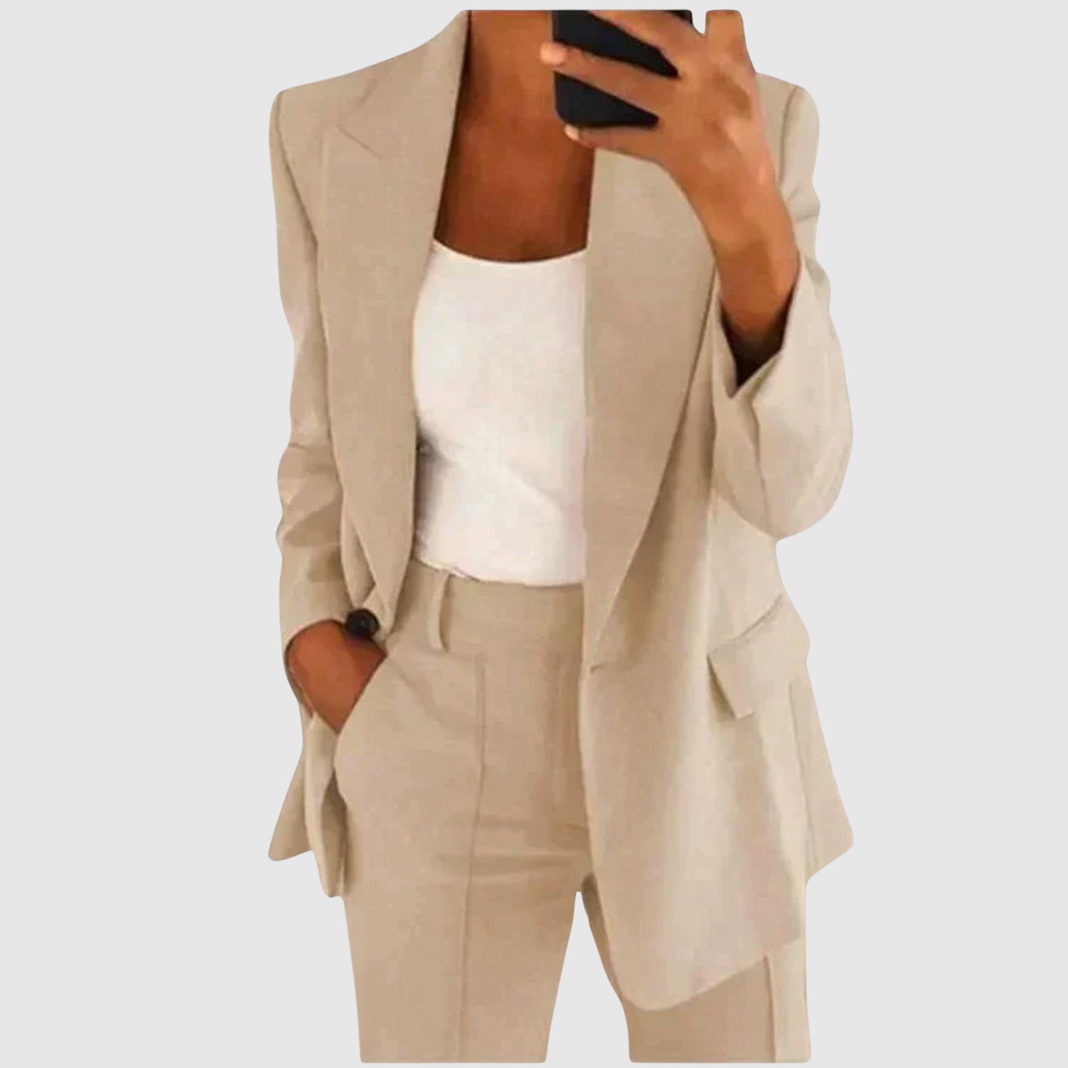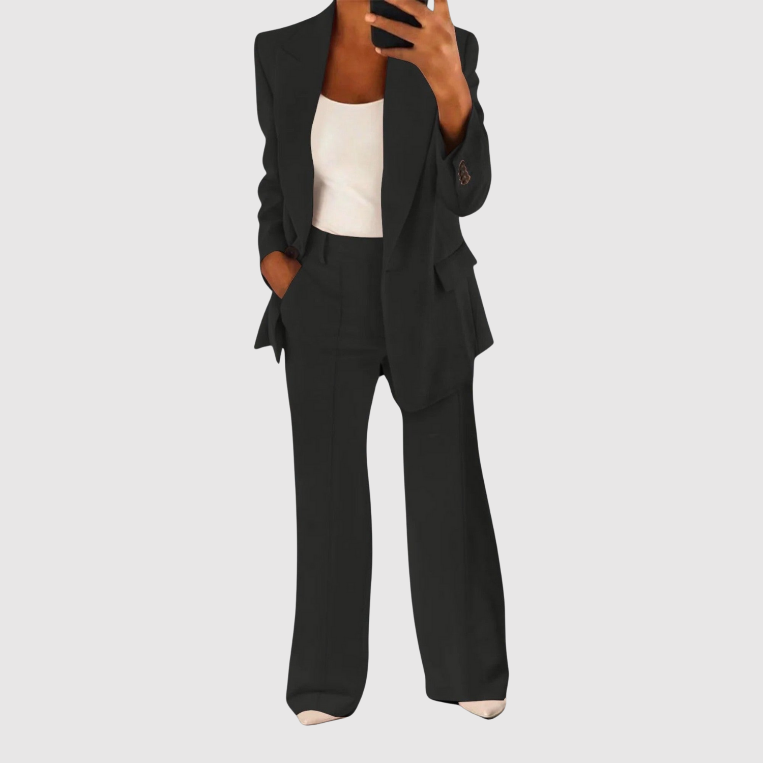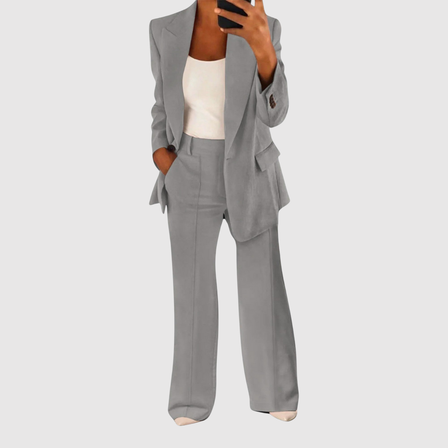 Ten kombinezon łączy klasyczne kroje z nowoczesnym akcentem. Z czystym designem i wygodnym krojem jest idealny do biura, na spotkania lub formalne wydarzenia. Tkanina pięknie opada i nadaje elegancki, stylowy wygląd.