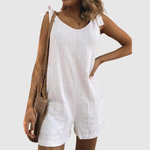 Przewiewny i prosty kombinezon, idealny na nieformalne letnie stylizacje. Zaprojektowany z wiązaniem na ramionach dla kobiecego akcentu i wykonany z lekkiego materiału, który zapewnia komfort i styl. Idealny na wakacje, plażowe wycieczki lub codzienne noszenie w ciepłe dni.