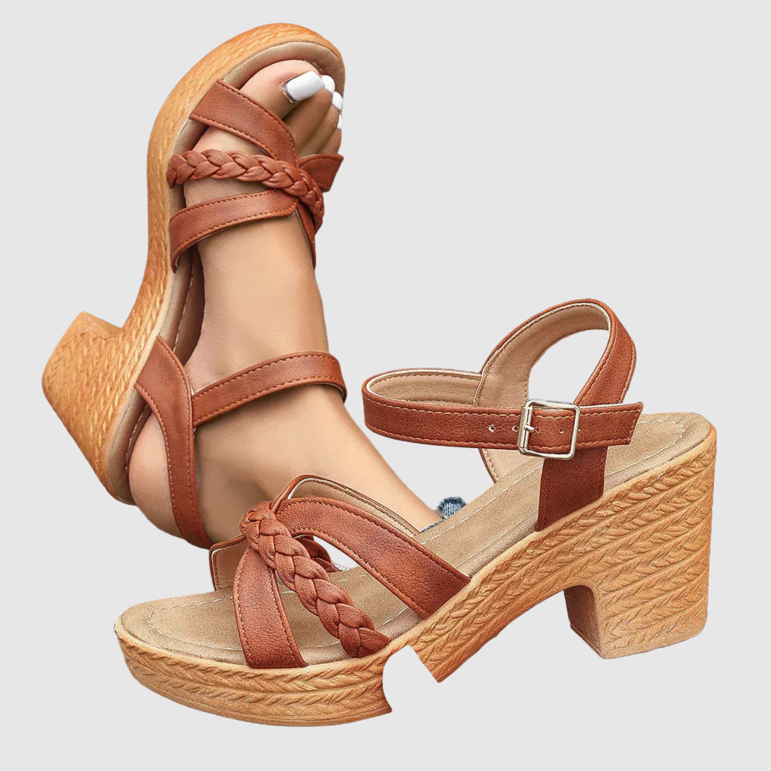 Teodora - Sandały na platformie z plecionym paskiem