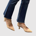 Te beżowe szpilki łączą ponadczasowy styl z codziennym komfortem. Niski obcas zapewnia lekkość i stabilność, podczas gdy delikatne krzyżujące się paski podkreślają nogę i nadają kobiecy wygląd. Neutralny kolor doskonale pasuje zarówno do dżinsów, jak i do sukienek.